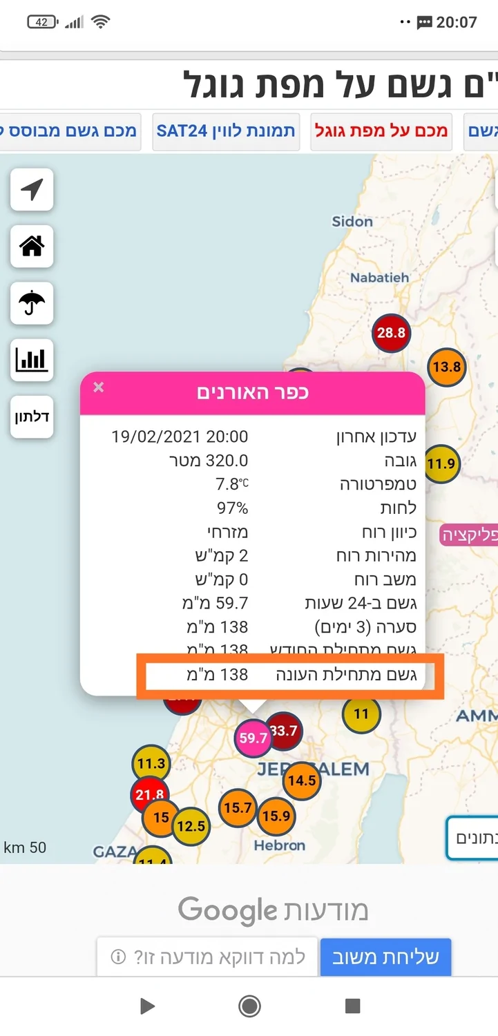 יש מצב שבתחילת המערכת חלק מהמשקעים ירדו כגשם אז אני לא אתפלא אם יסתבר שהרכבל העליון סגר 200 מ"מ במערכת הזו...