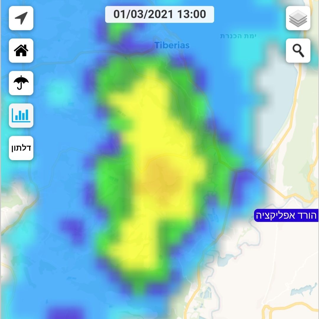 יבנאל קיבלה 1.7 מ"מ בין 12:50 ל-13:00, גם צפת וחיפה גשומות