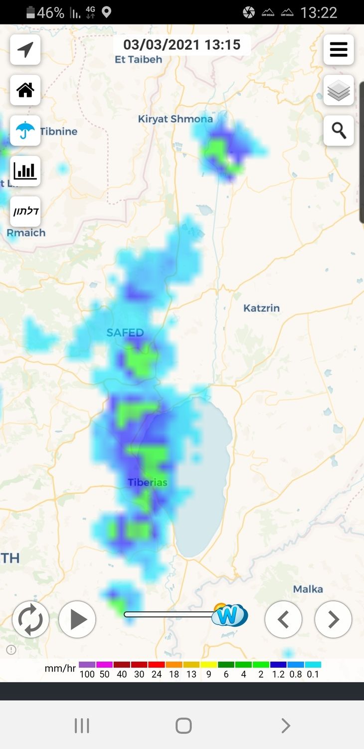 ואין אפשרות לדעת כמה ממ יורדים באזור