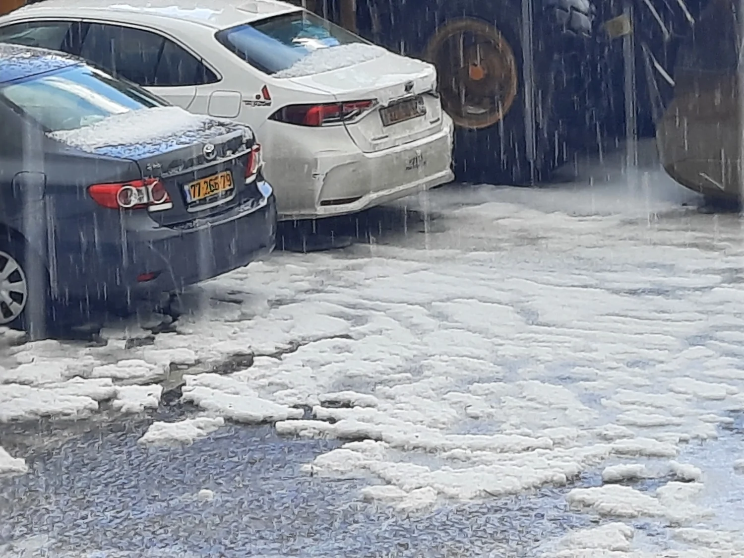 - ככה זה כשעובר אדום.. ברד בכמויות שמאי