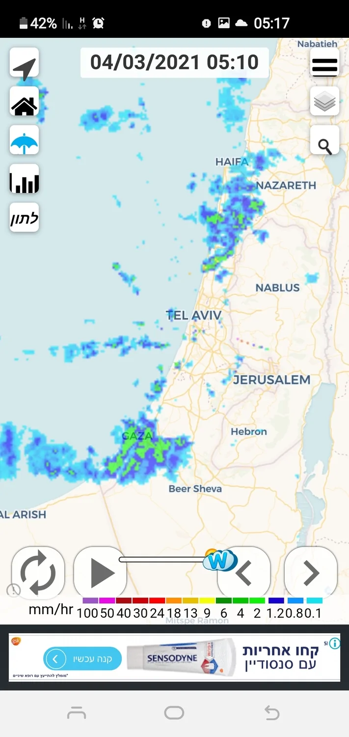 מעניין ששוב הגשם הקצר שחלף פה כמעט ולא נראה במכ"ם