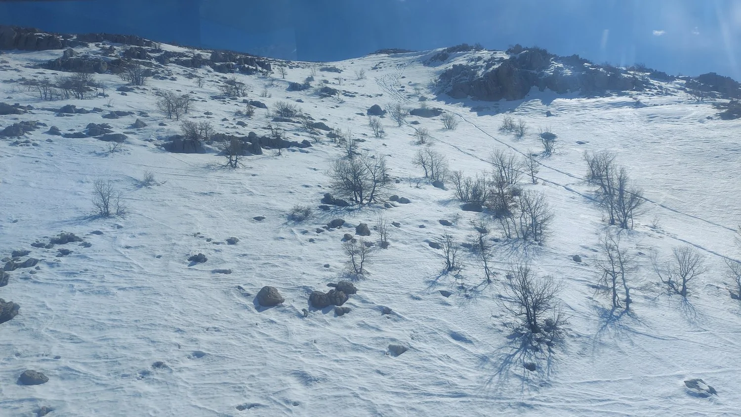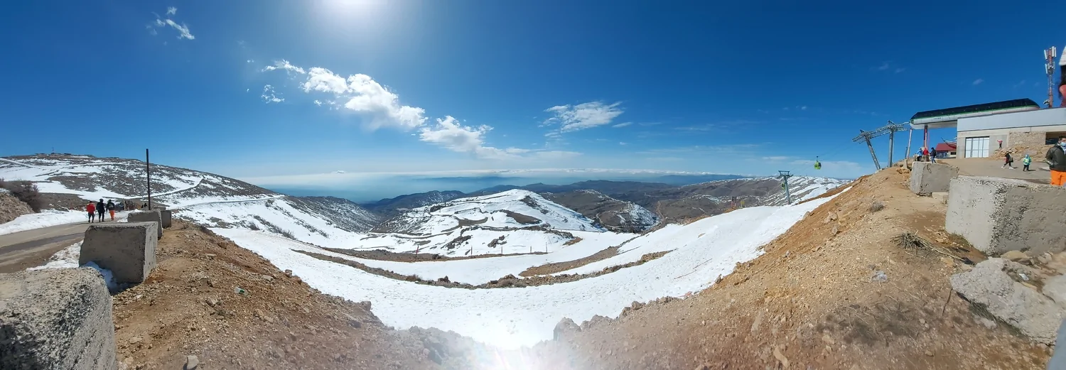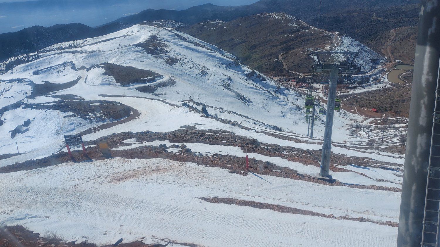 בצלע ההר הפונה לדרום לא נותר שלג אך בזה הצפוני נותר שלג