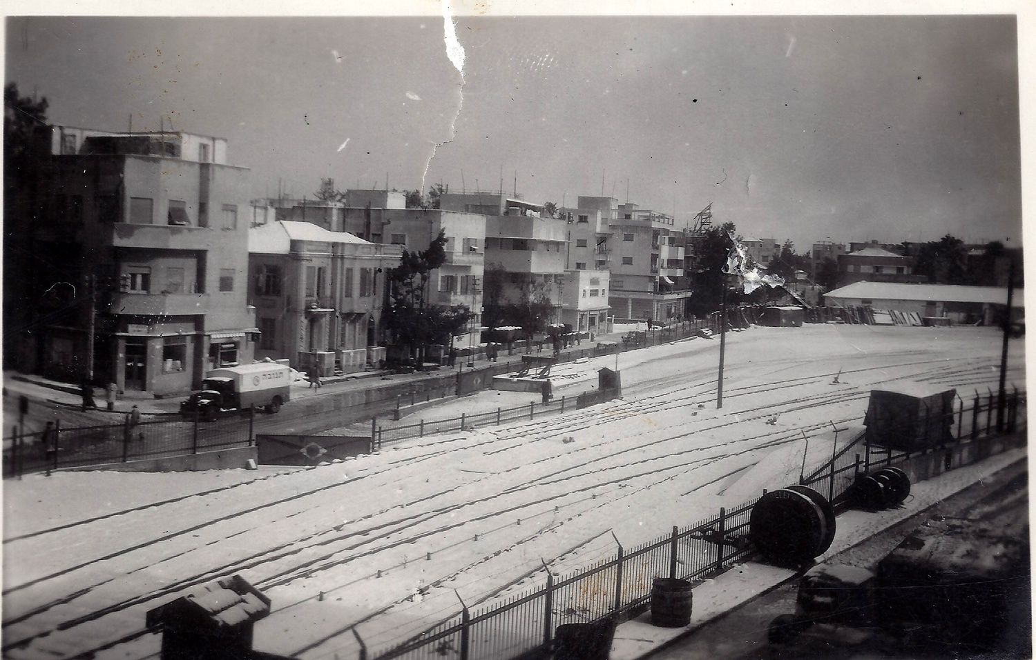 שלג בתחנת הרכבת בתל אביב ב-1950