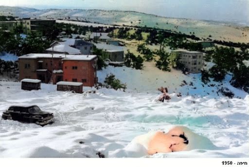 - שלג בתחנת הרכבת בתל אביב ב-1950 מתנאל