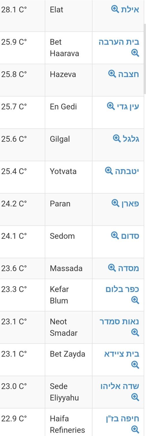 כעת בירושלים 15.1° וביטבתה 23.6°, הפרש של 8.5°.