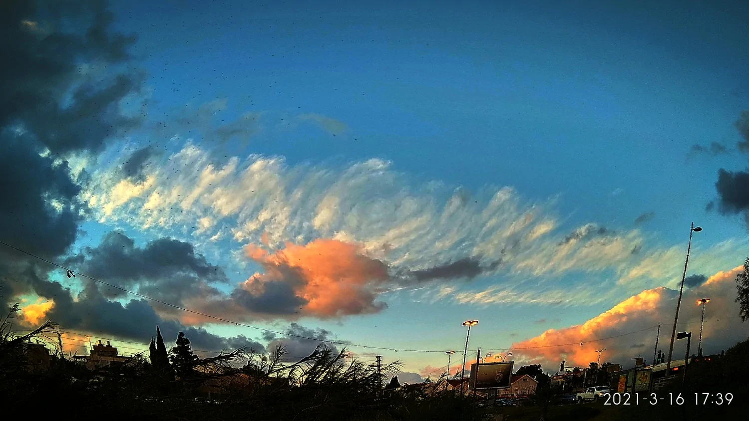 העננים צולמו לכיוון דרום והשמיים הבהירים נמצאים מדרום מערב לכאן.