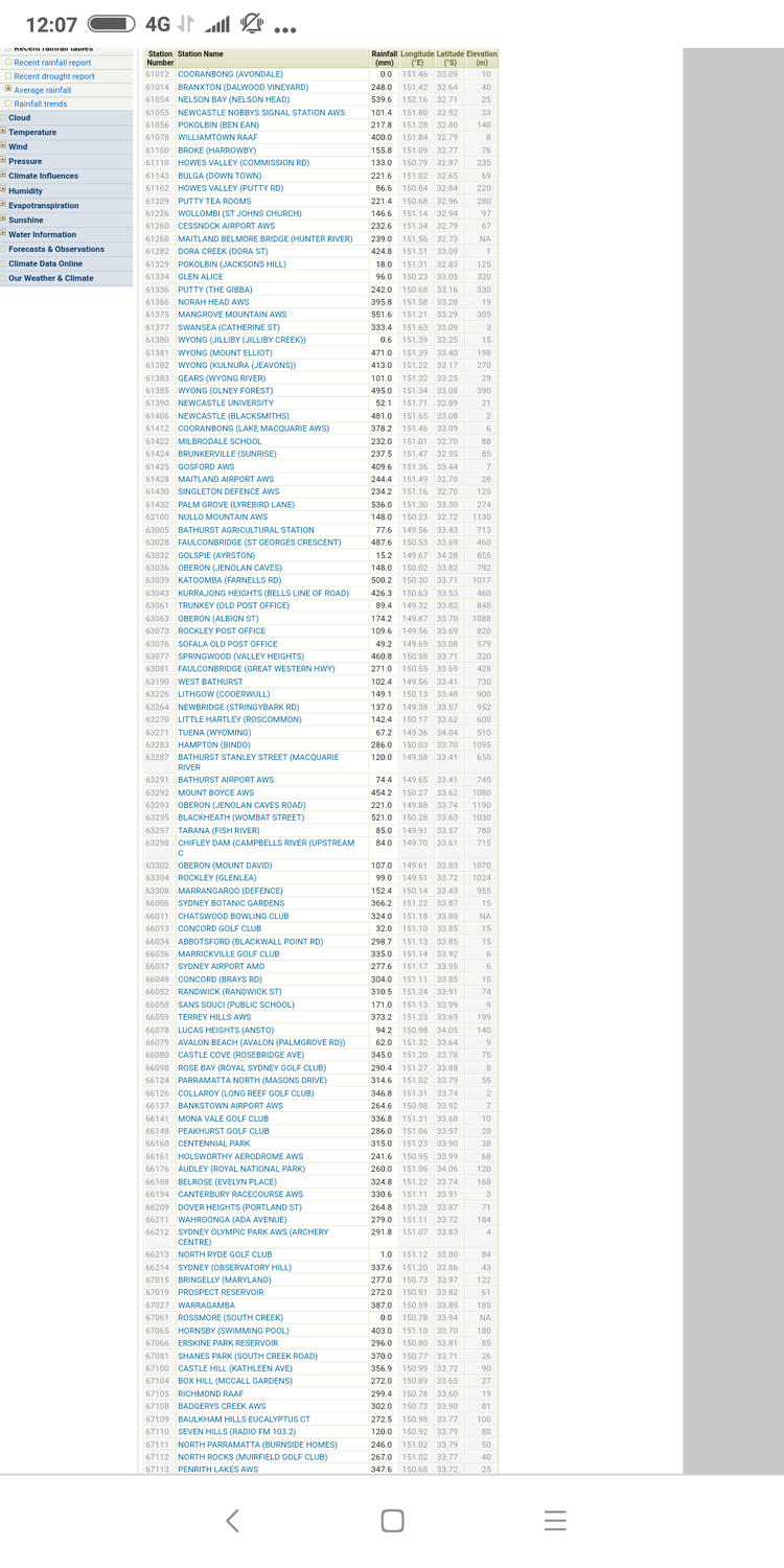 - חלק ניכר מהתחנות בהרים הכחולים מערבית לסידני דיווחו על כמויות חנוך א