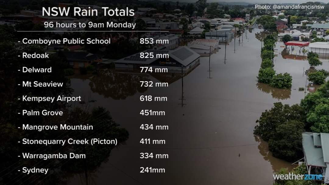 כתוצאה מכך המאגרים המזינים את סידני התמלאו ועכשיו נאלצים לשחרר כמויות גדולות של מים בסכר מה שגורם להצפות בעיירות במורד הנהר ובעיקר בעיירה PENRITH ממערב לסידני - הצפות שלא נראו כמותן מאז 1961