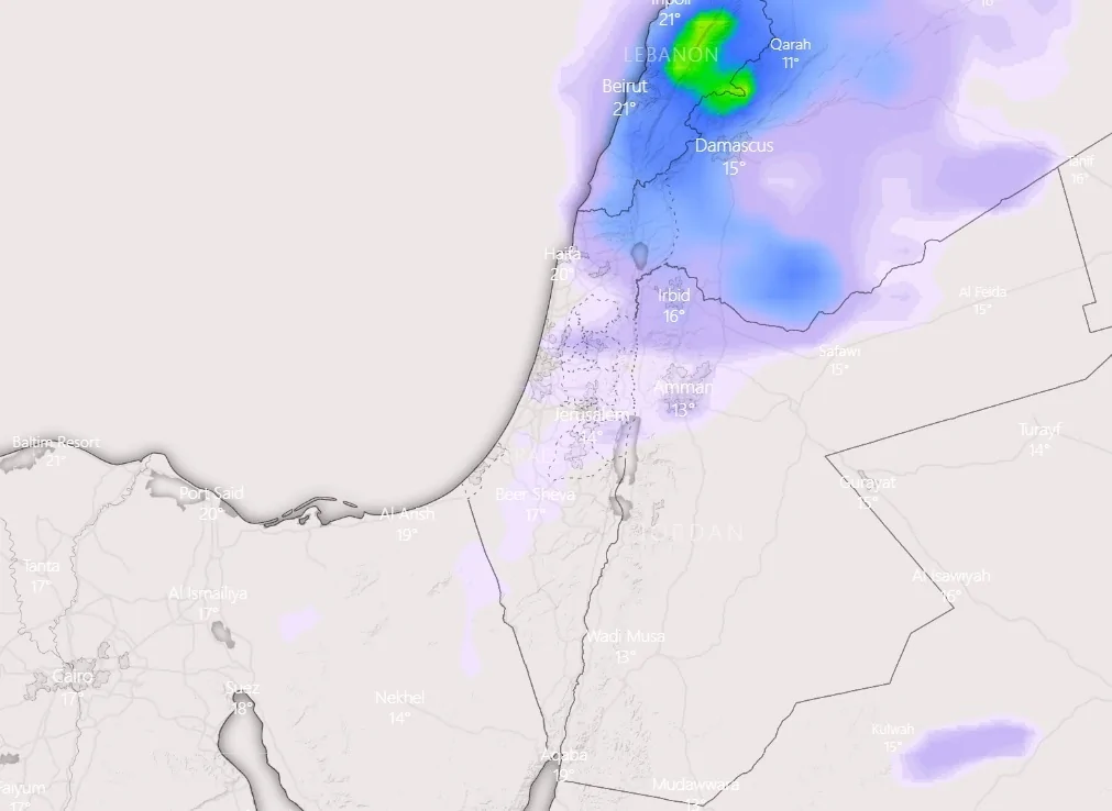 בשני שלישי לפי מפות המשקעים ולפי תחזית האתר למרום גולן