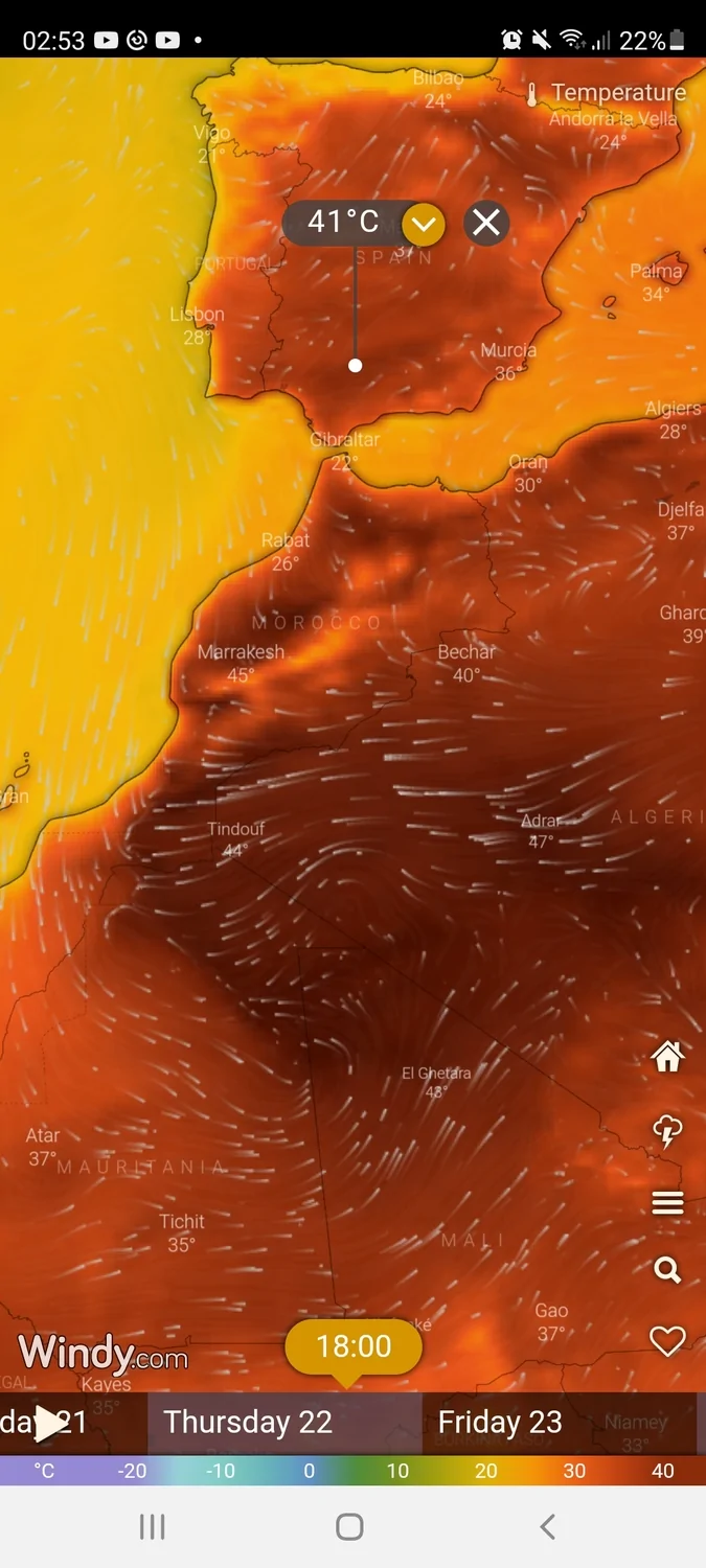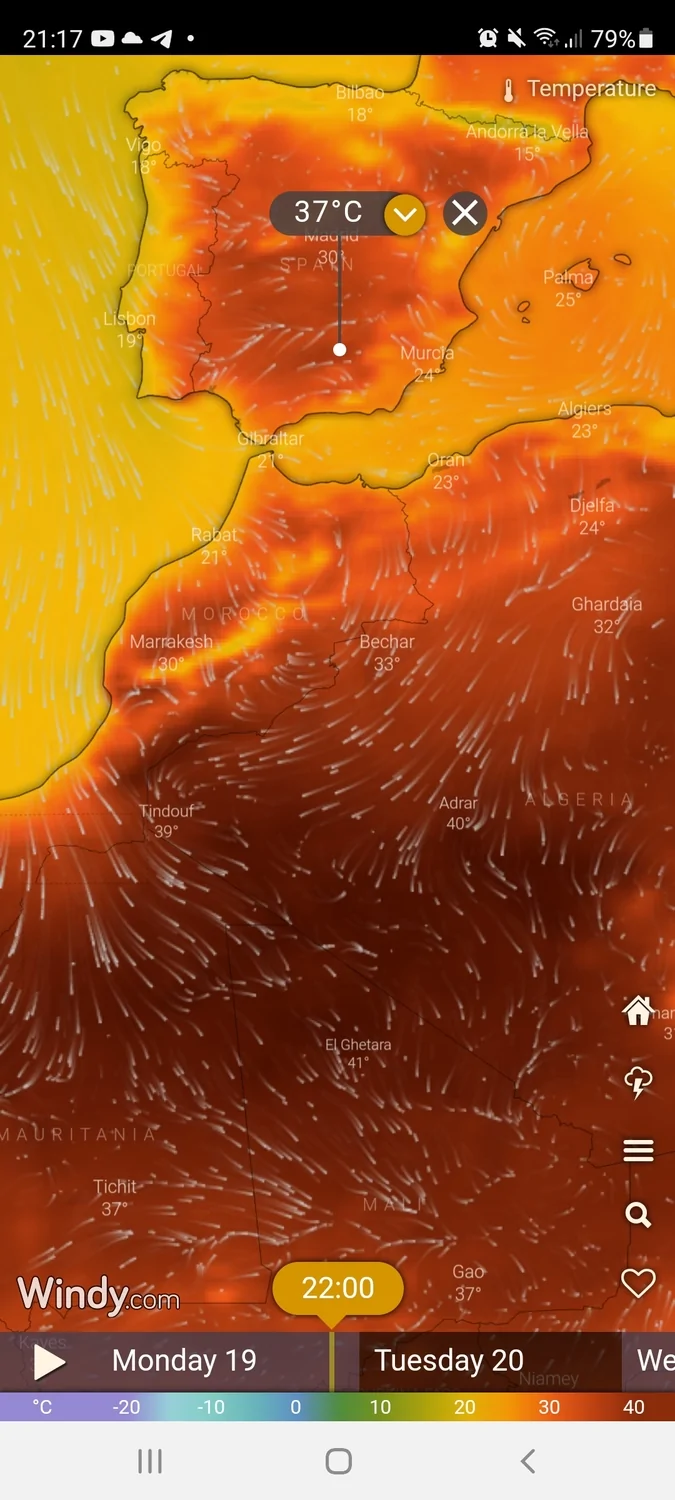 - לפי Windy יש גל חום רציני בספרד עכשיו אופיר פרנקו