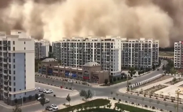 - בסין: סופת חול נכנסה לעיר דנהואנג שבצפון מערב סין והביאה לסגירת כבישים ודרכים דובי