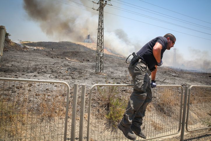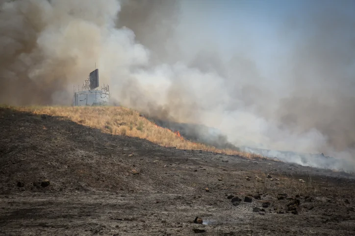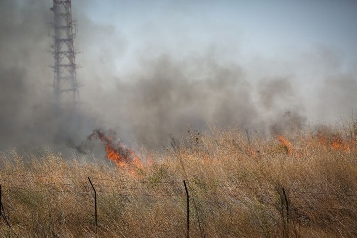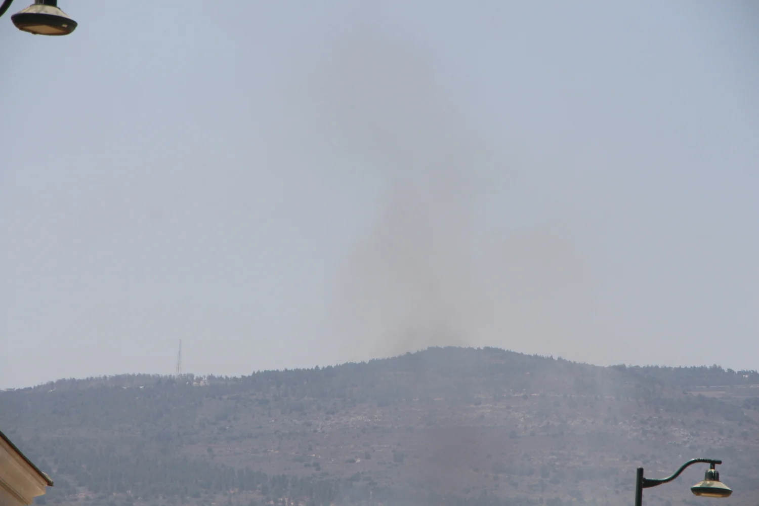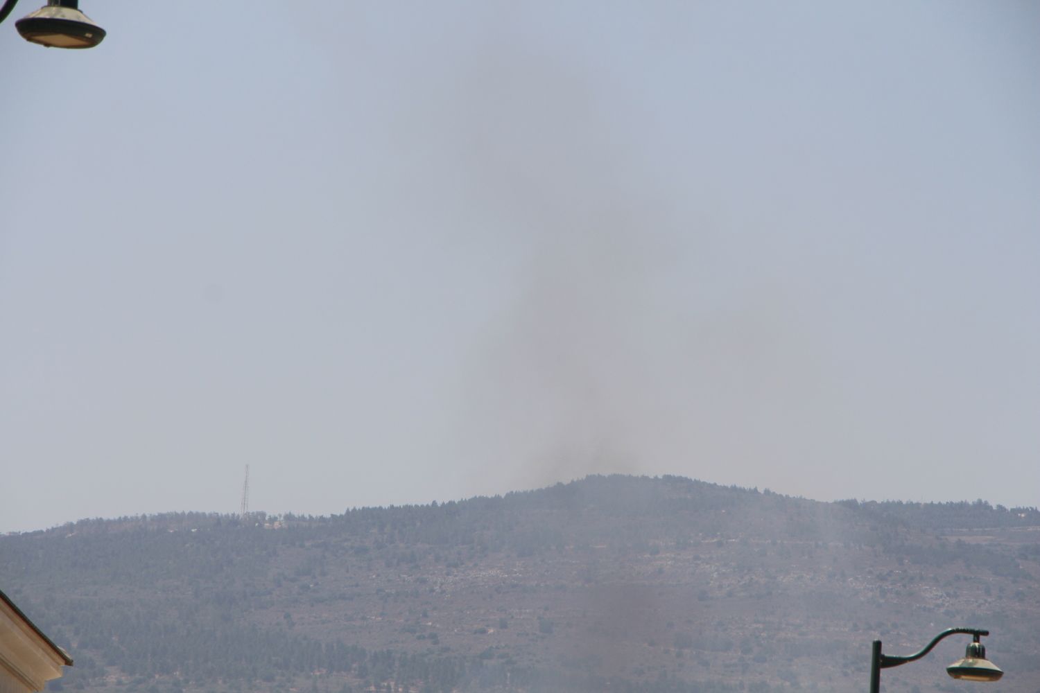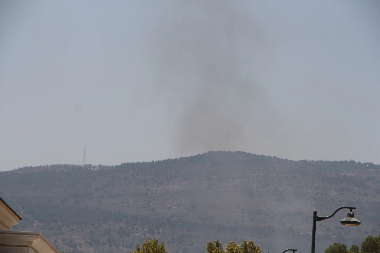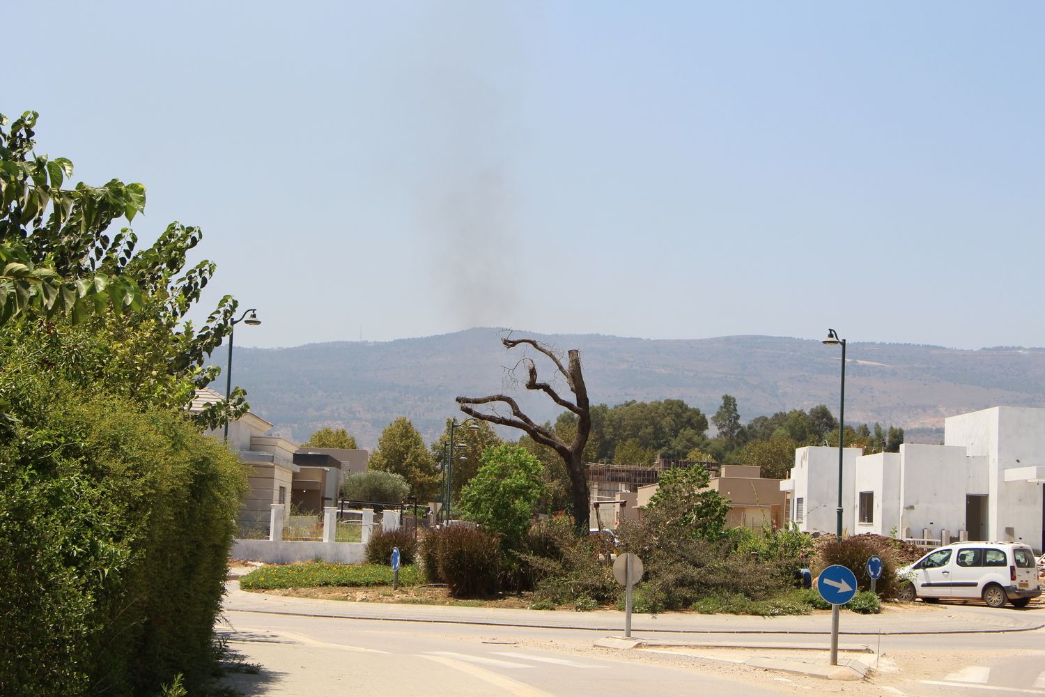 - מבט מקיבוץ "הגושרים" לעשן המיתמר בעקבות השריפה מנפילת הקטיושות: מתנאל