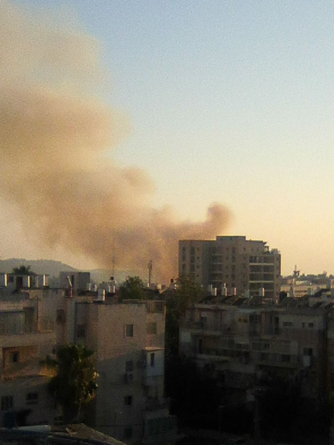 למטה: השריפה בא.ת גבעת שאול, צילום מגשר המיתרים