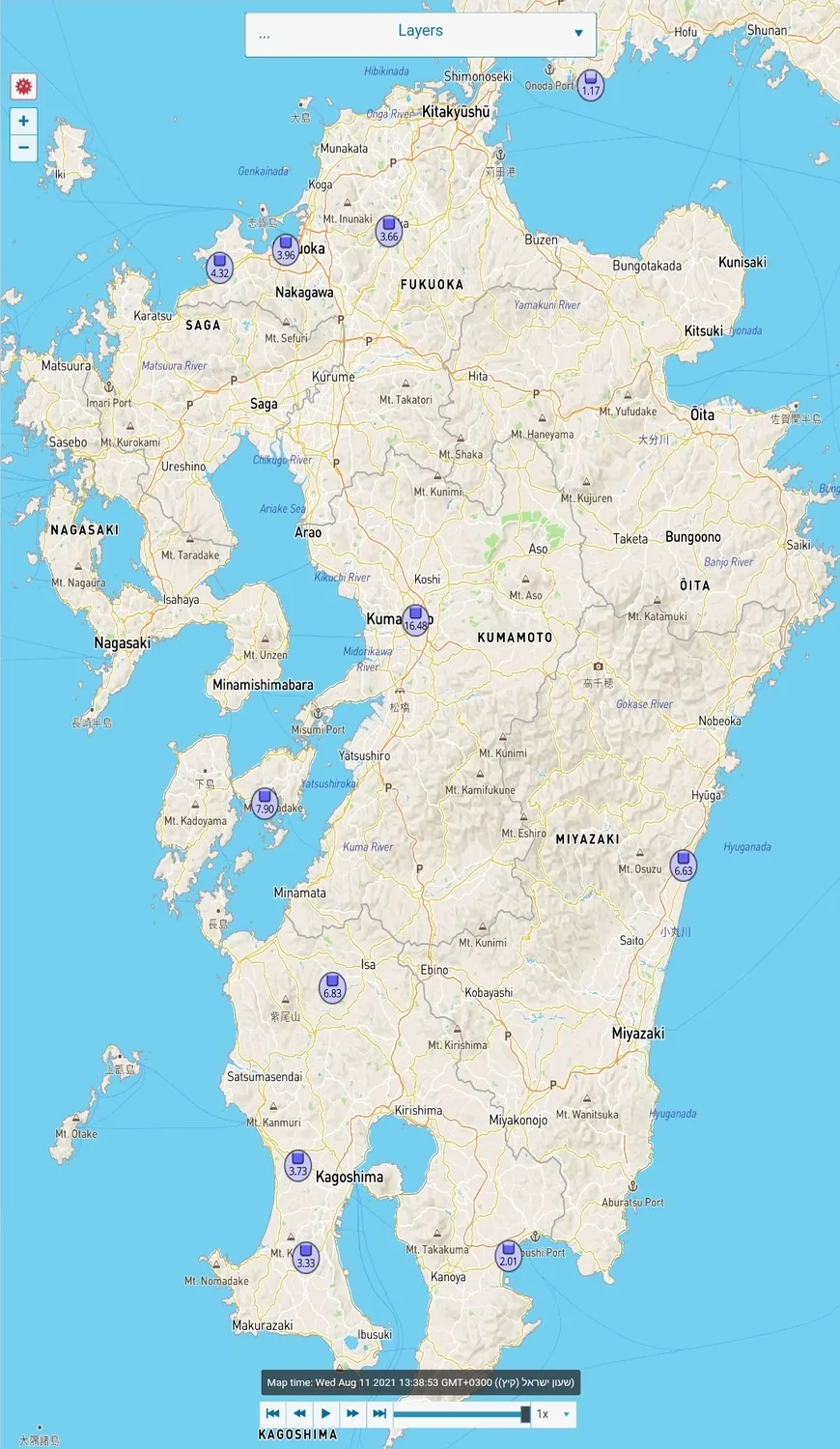 - הכמויות בדרום יפן עברו 150 מ''מ חנוך א