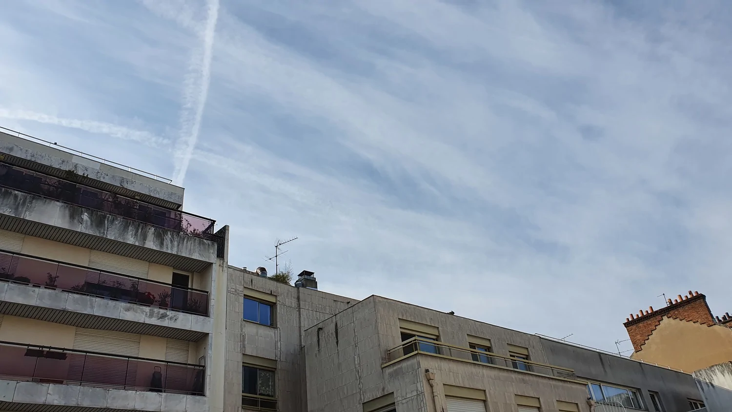 - לא רק שובלי מטוסים, יש גם עננות בינונית וגבוהה (בצפון צרפת) אבי (פרדס כץ)