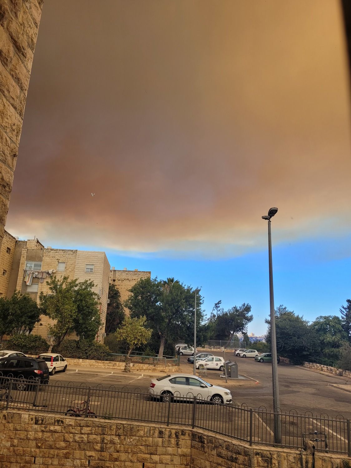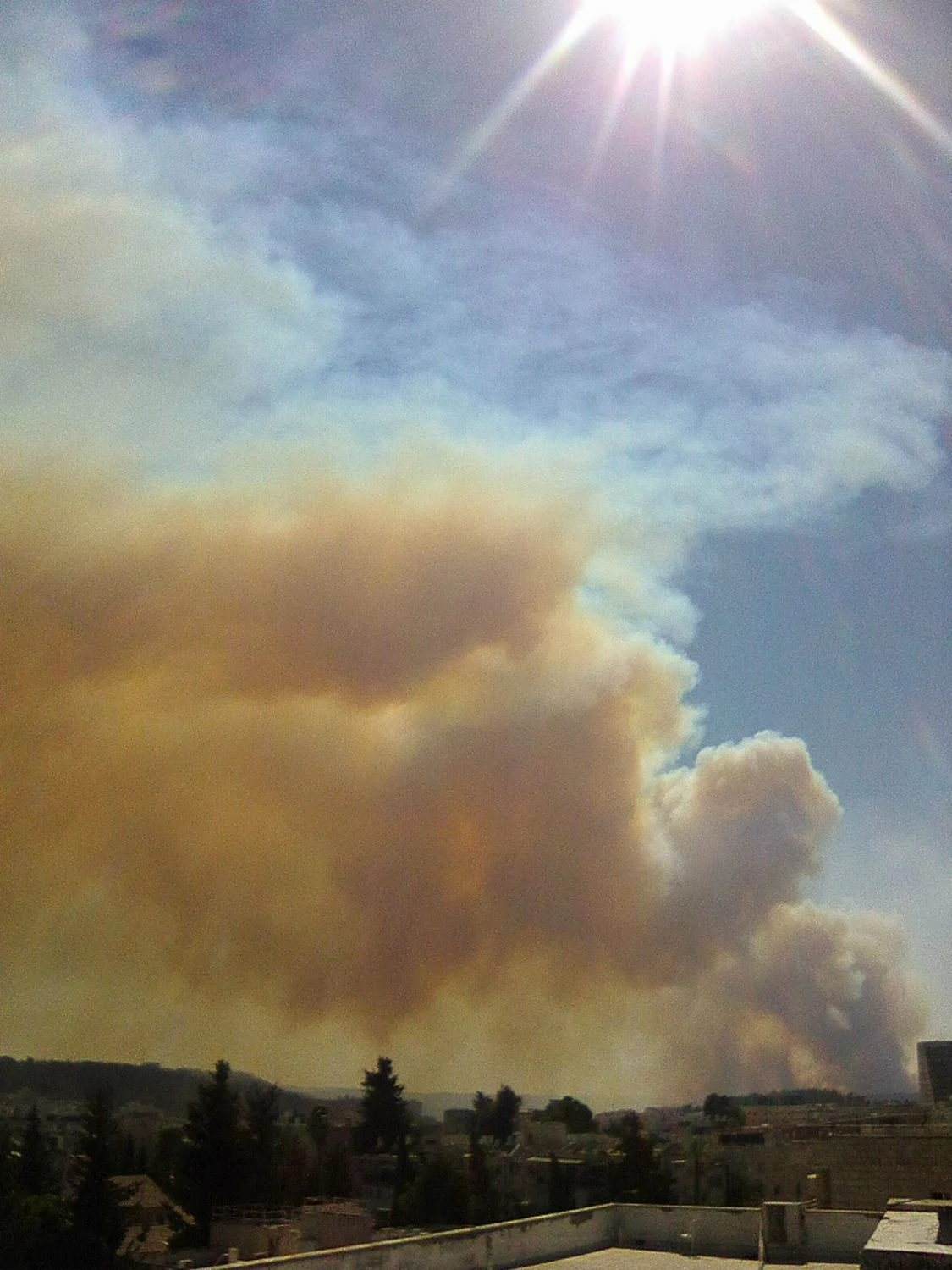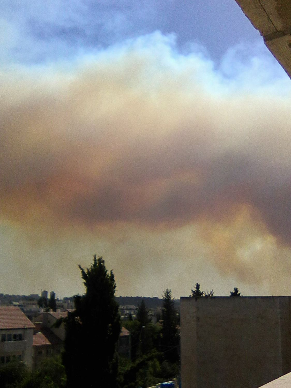 בלילה, כיוון הרוח השתנה קצת והעשן ירד נמוך ומילא את כל שכונות מערב ירושלים (גם הבוקר).