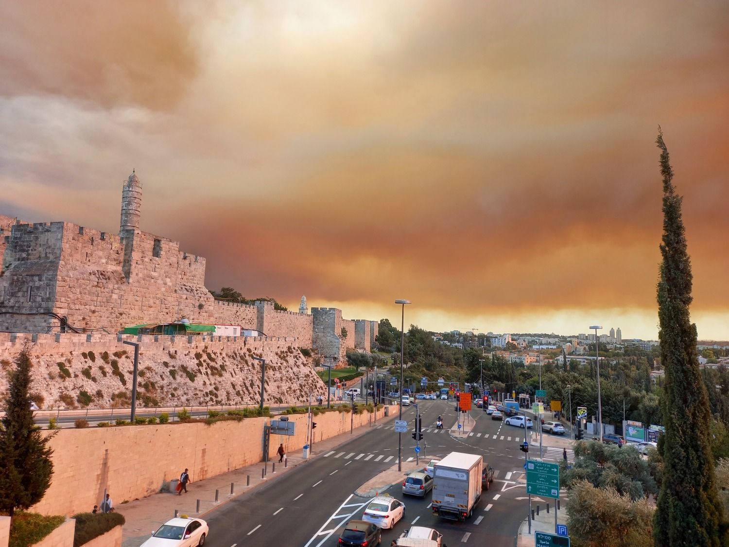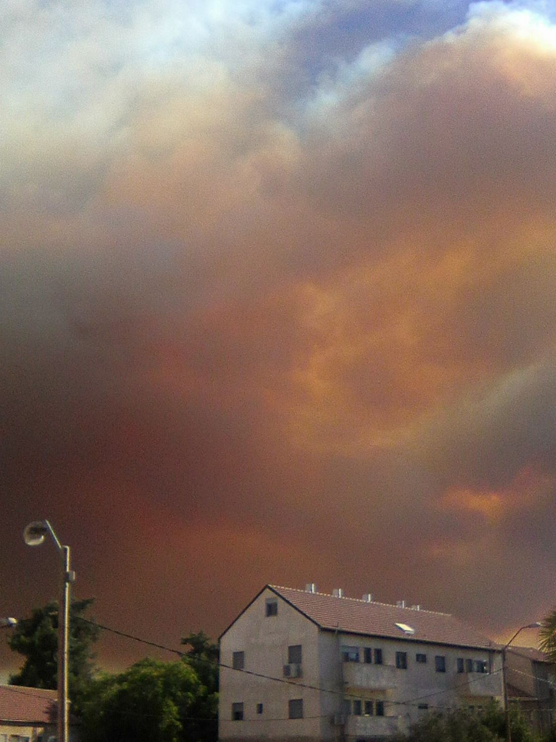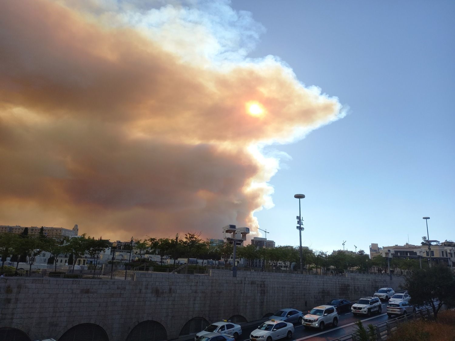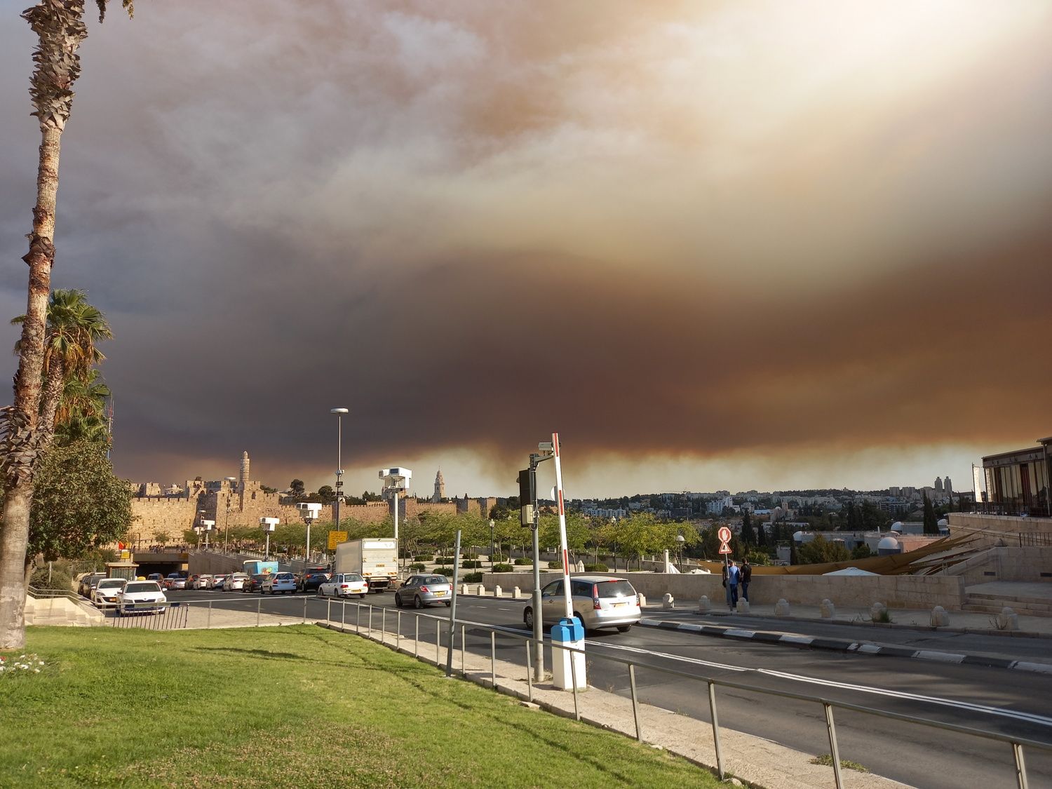 בלילה, כיוון הרוח השתנה קצת והעשן ירד נמוך ומילא את כל שכונות מערב ירושלים (גם הבוקר).