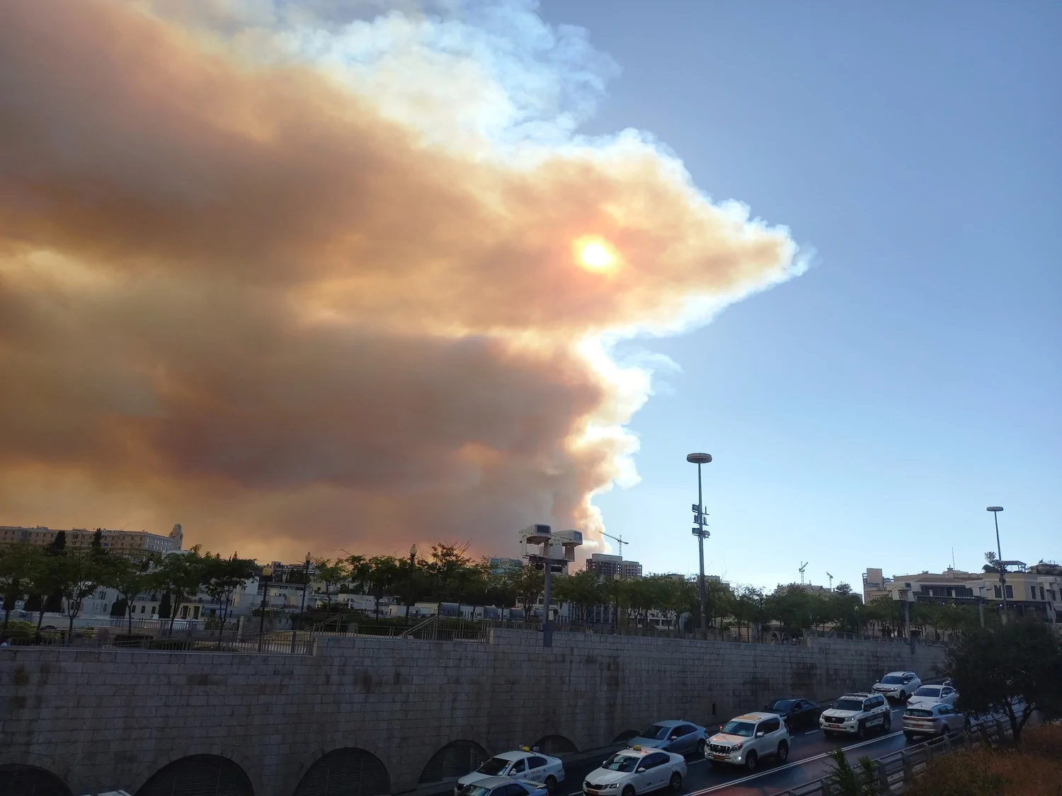 - יום שני: 13:45 התחדש ענק עשן דק מהשריפה בשמי מערב ירושלים דובי