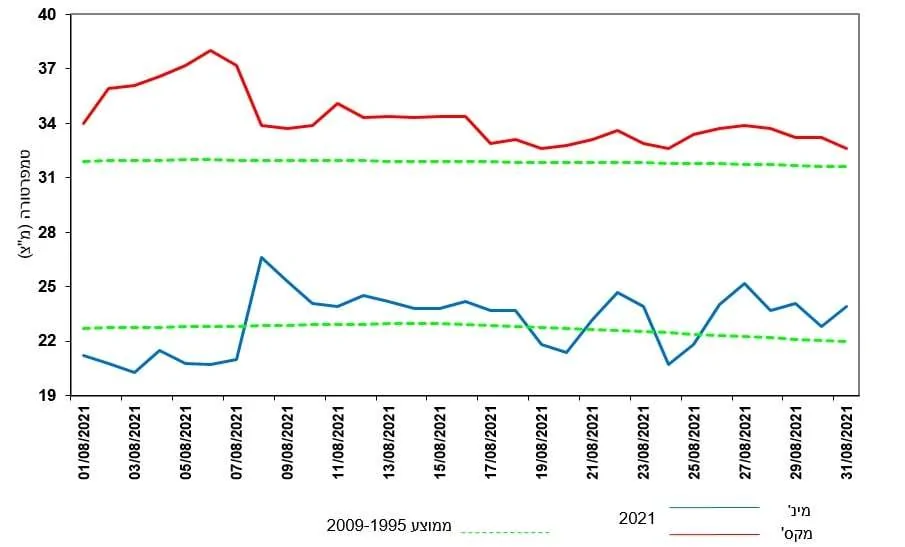 39.5⁰ שנמדדו ב-5/8/21 שברו ב-0.1⁰ את השיא הקודם מה-1/8/12.