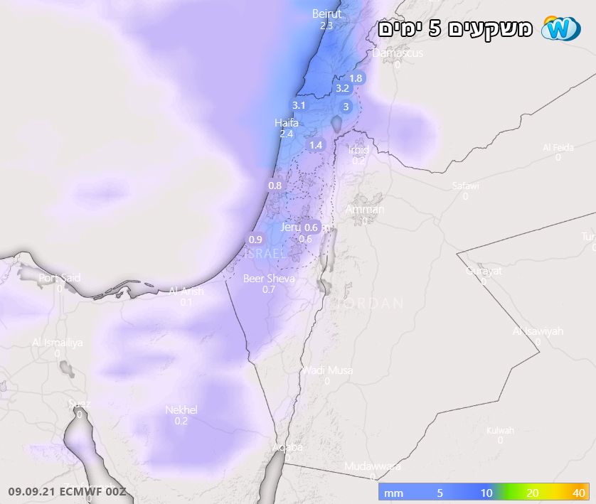 - צפי משקעים מעודכן ECMWF 00Z Weather2day