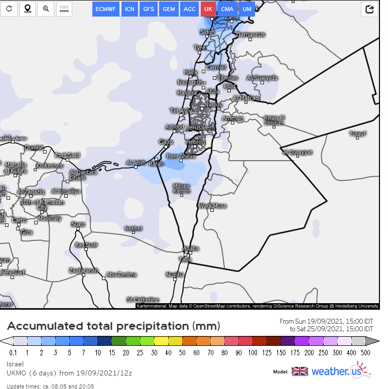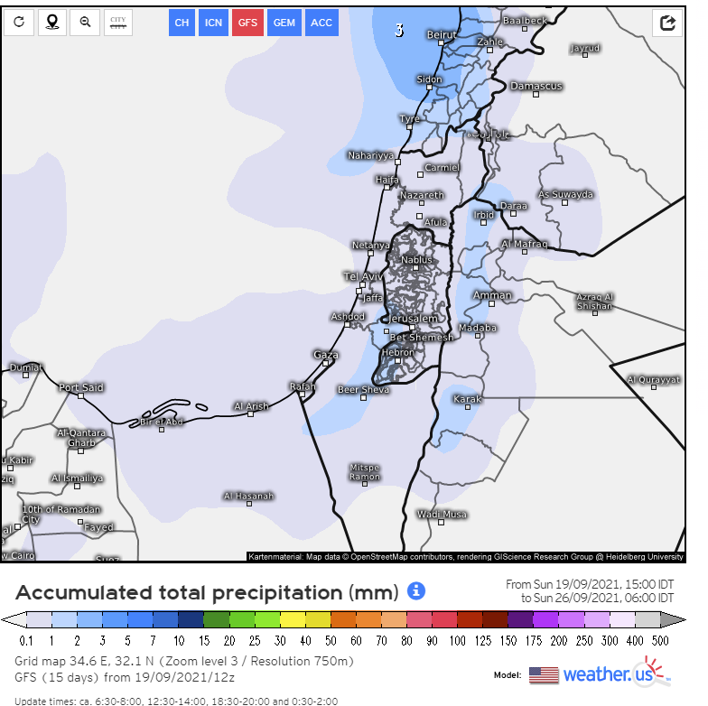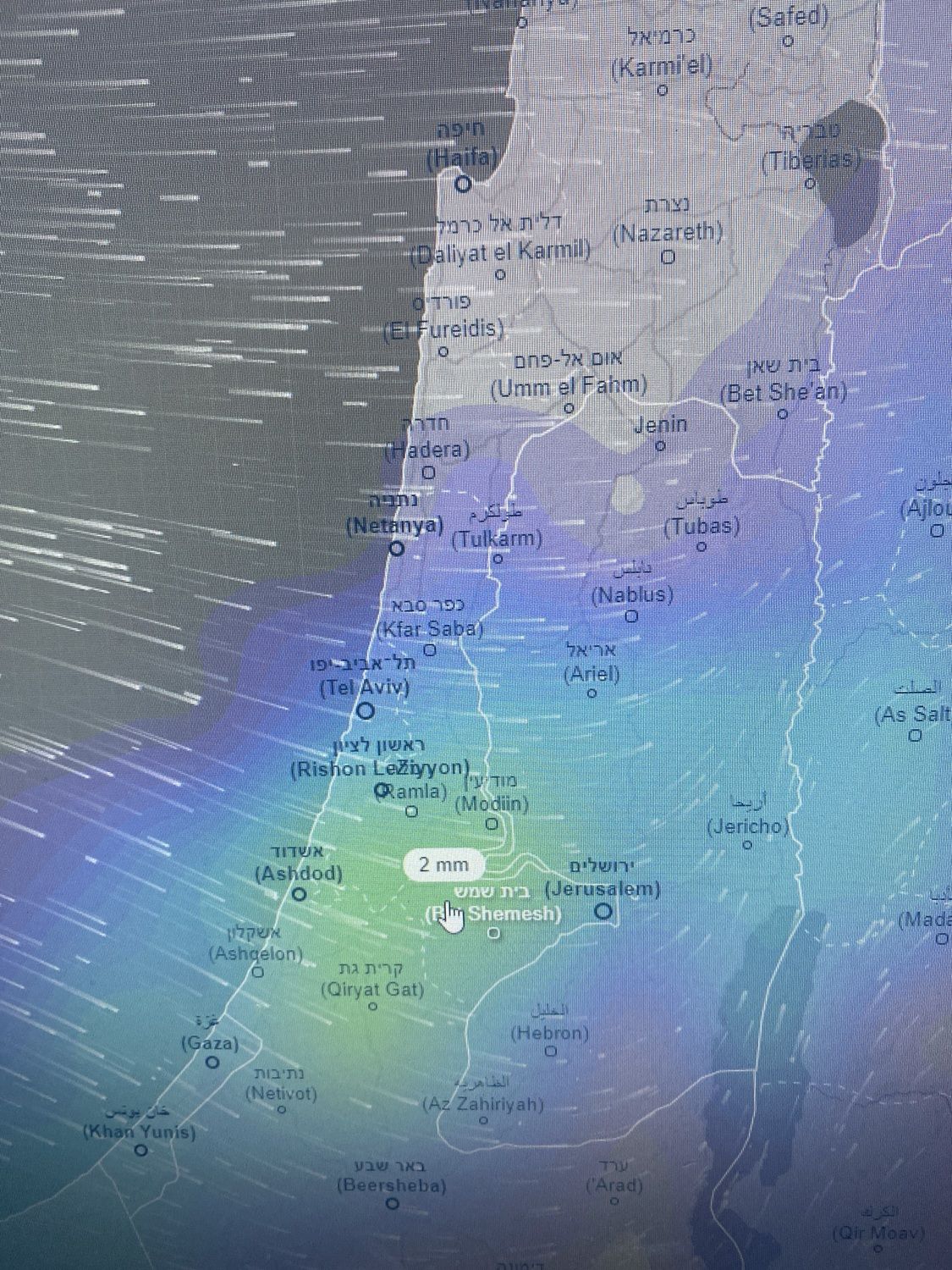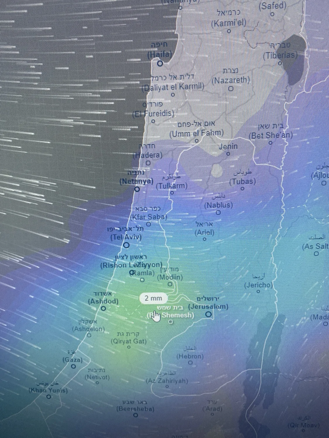 - GFS נותן 2 מ״מ גשם באזור בית שמש אדיר אלעד