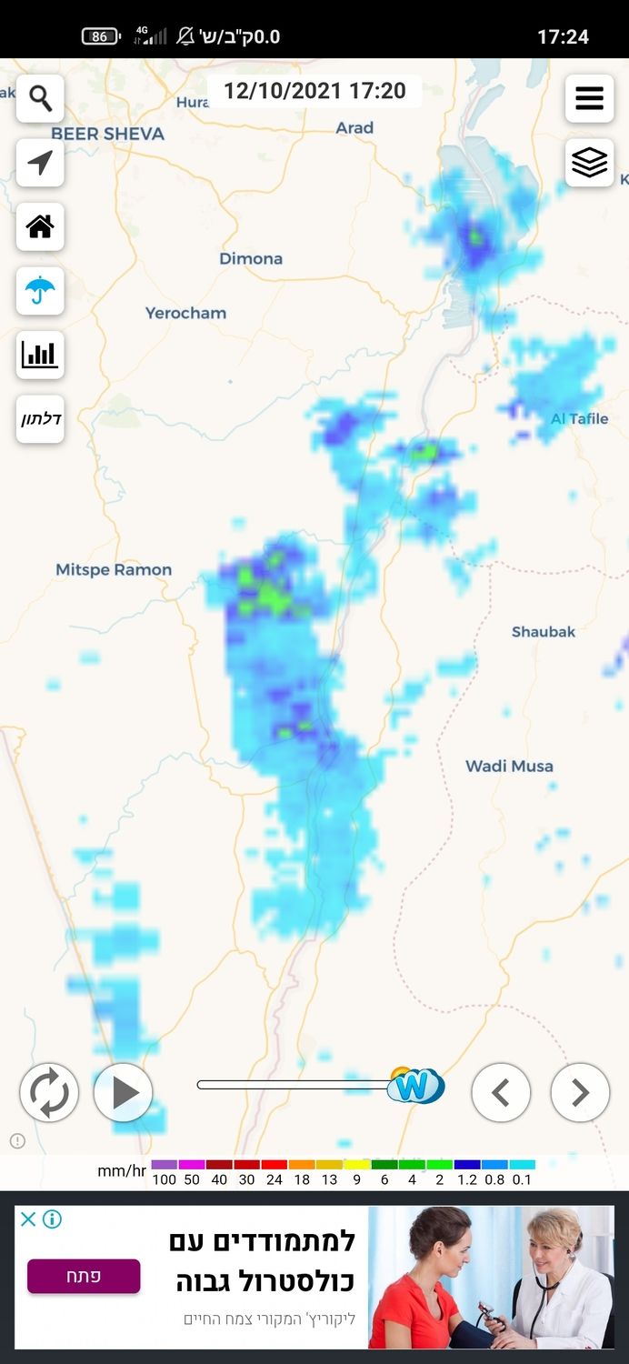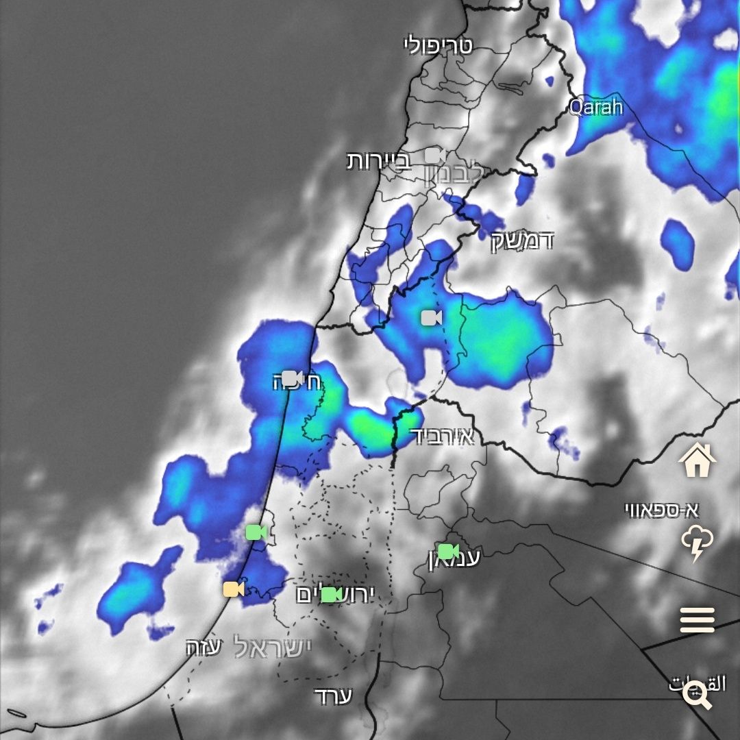 - ניכר שהגשם אכן החליט להתחזק לעת ערב, ליד מירון המכ"ם מזהה גשם כבד או ברקים ורעמים שלג באוגוסט