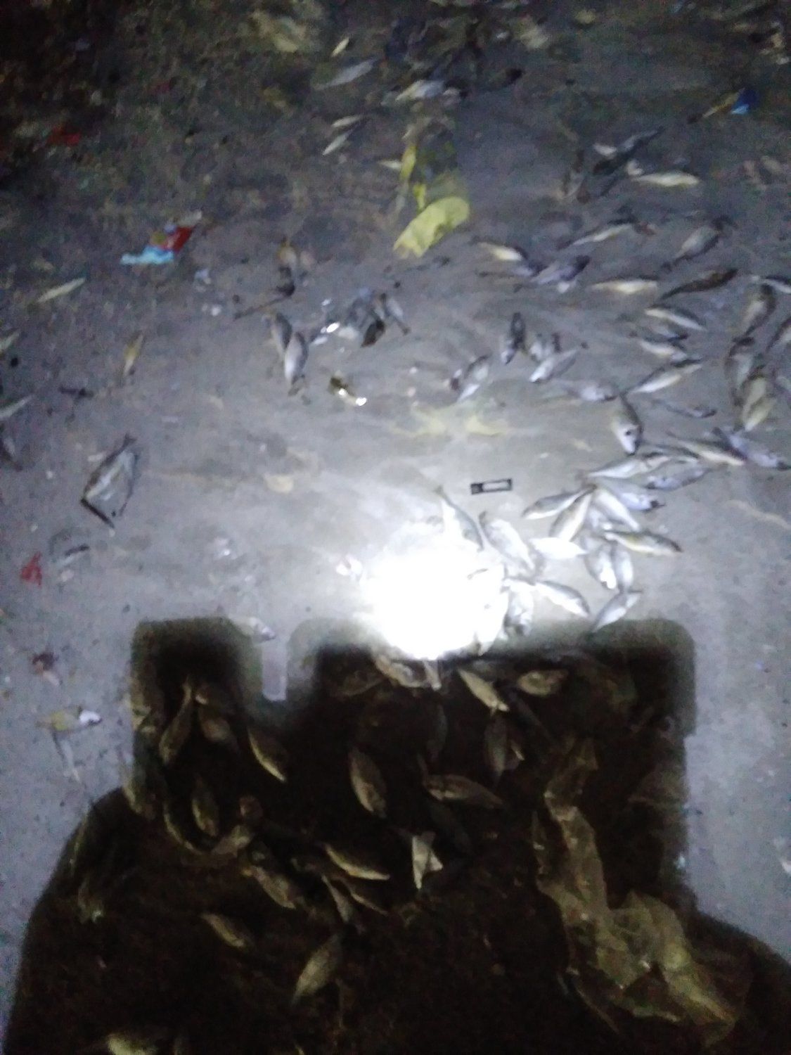 אגב, לא ציינתי אך מדובר להערכתי באלפי או אפילו עשרות אלפי דגים מתים. (מסוג הקרוי ואקואק בפי הדייגים. הדג הגדול הוא סוג של טונה שנקרא פלמידה).