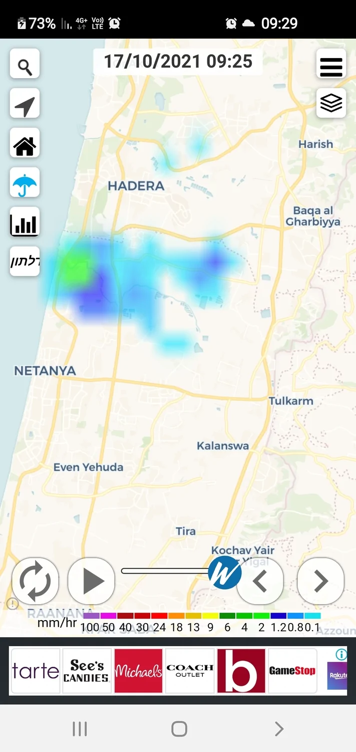 - מודיעין עילית 1 מ"מ. היה גשם כבד למשך דקה משה