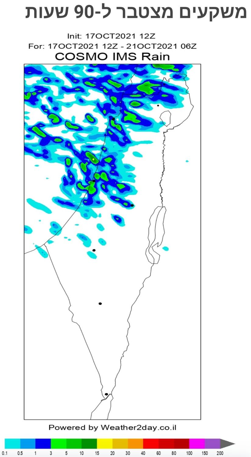 צופה משקעים בצפון ובמישור החוף.