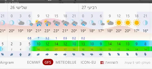 ה-GFS נותן תחזית לאירוע גשם משמעותי בשבוע הבא. עדיין מוקדם מכדי לשמוח.