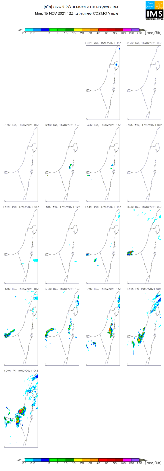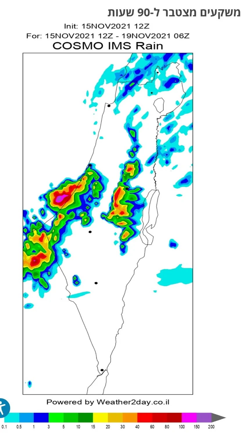 150 מ"מ מול אשקלון, 40 מ"מ במישור החוף הדרומי והרי המרכז, כמויות נאות גם בעוטף עזה. זה הצפי לבינתיים (כל זה עד שישי)