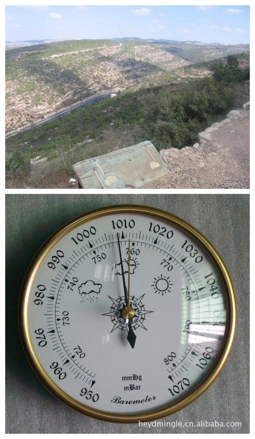 בחידה הרביעית: התמונה הראשונה היא של תצפית "רמה" בהרי ירושלים. התמונה השניה- ברומטר, וביחד- "רמה ברומטרית" שנוכחותה גורמת לאי ירידת גשמים ובד"כ ליובש וגם להתחממות כפי שכתבתי ברמזים.