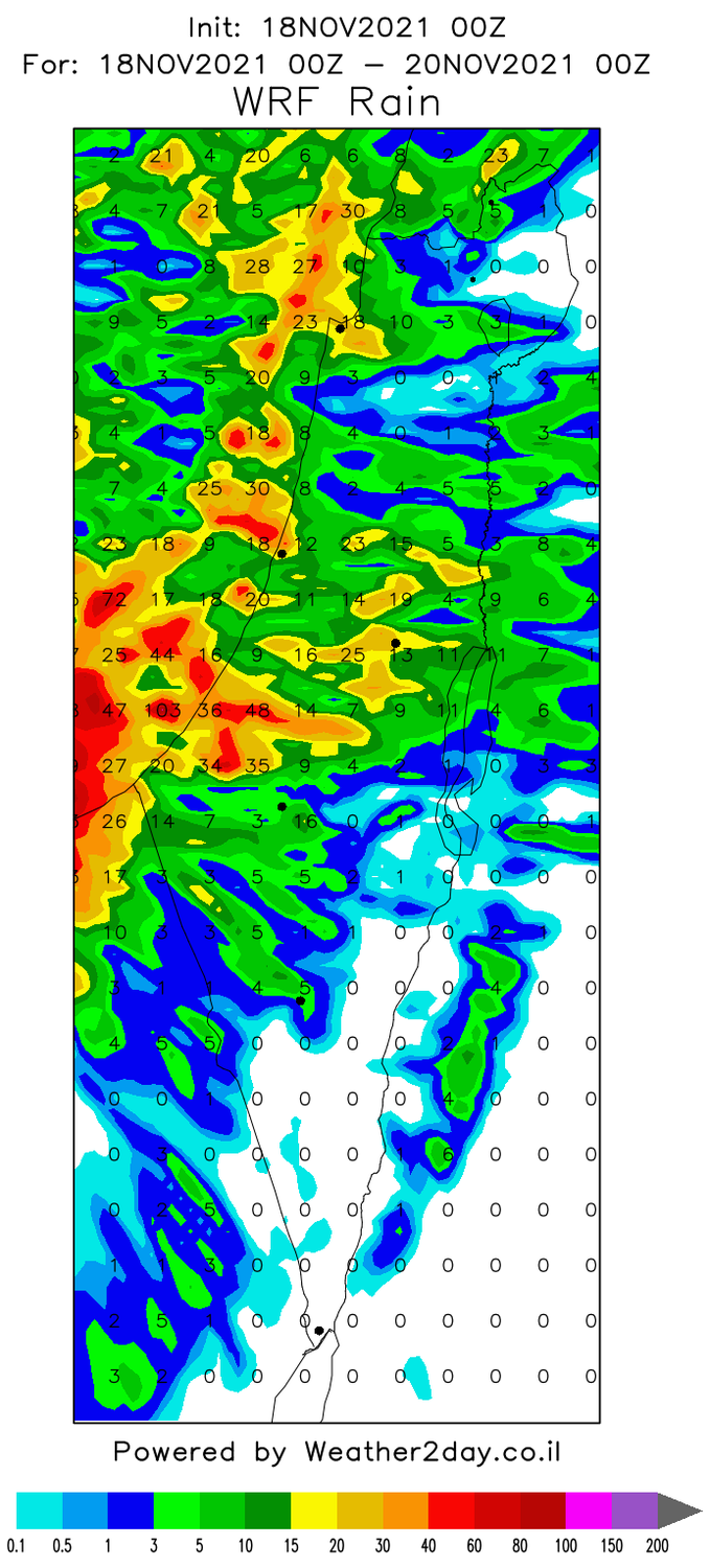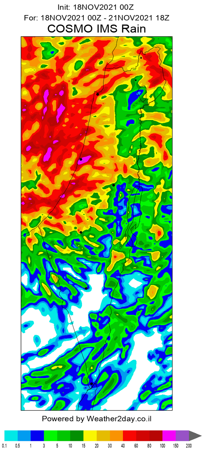- עדכון מזג האוויר - מערכת הגשם 18-21/11/2021 Weather2day