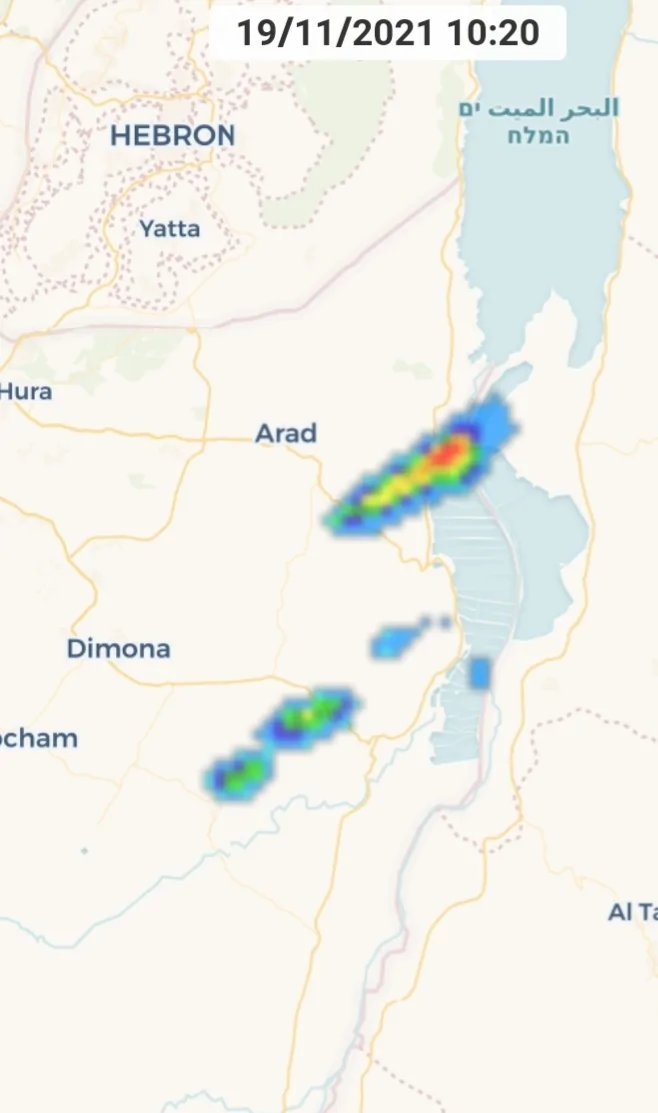 - לפי המכ"ם נראה שקיבוץ מירב (ליד מעלה גלבוע) קיבל כמות ממש רצינית של גשם ב45 דקות האחרונות john