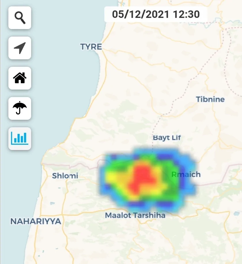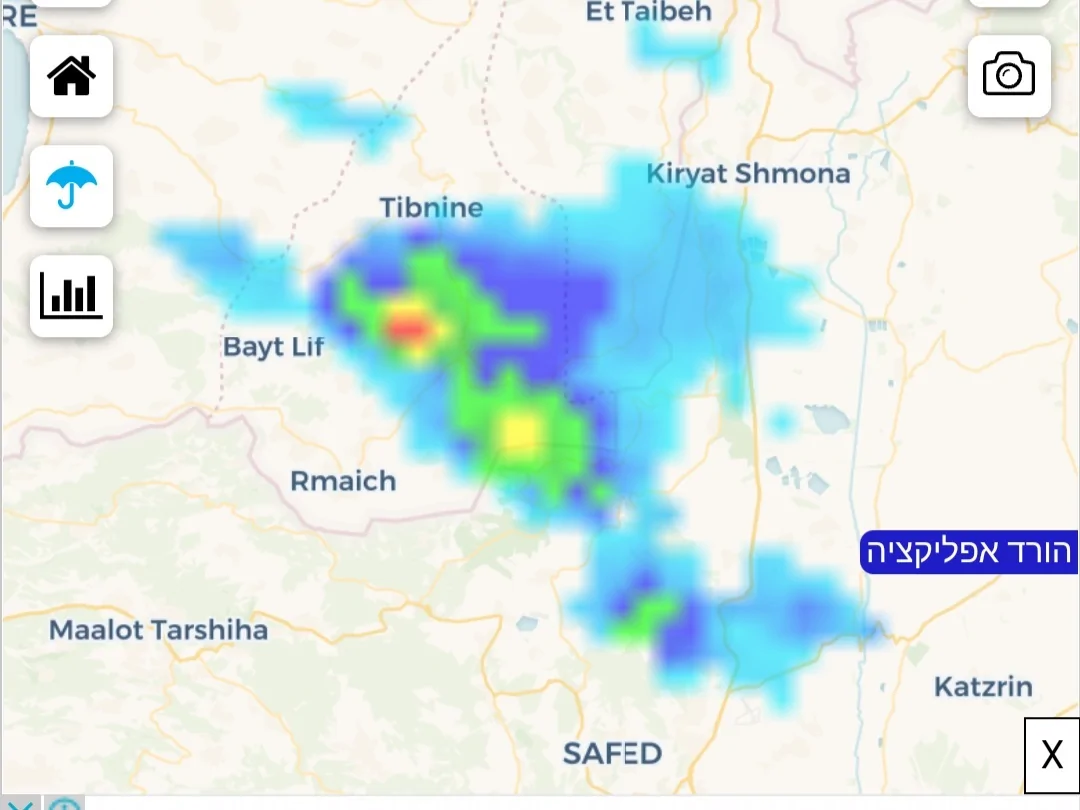 - 'תפתח' 12:15: המכם מראה ענן ממטיר על מעלות (מזרחית לנהריה) דובי