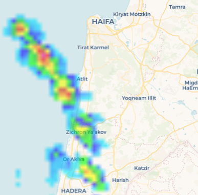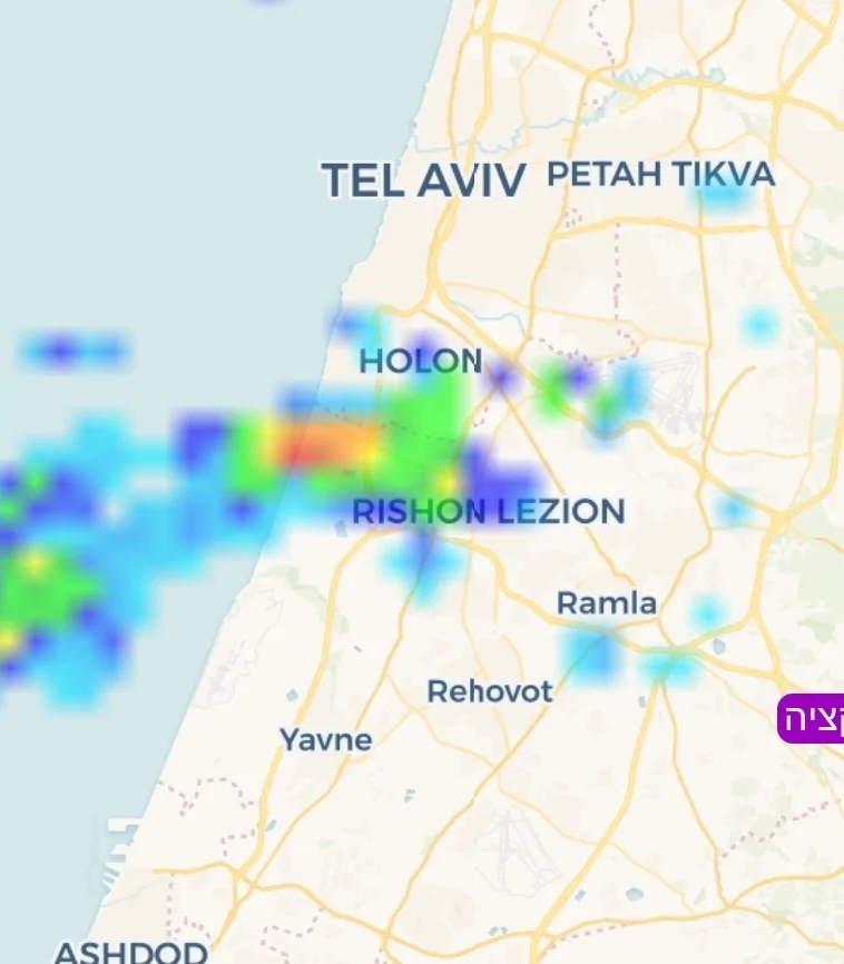 על פי תנועת הענן במכ"ם בחצי השעה האחרונה, נראה בהחלט שהוא יגיע לאזור חולון.