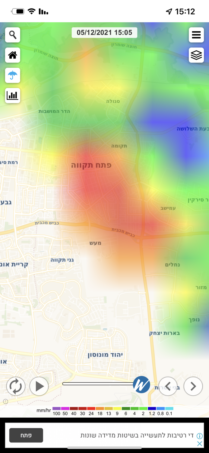 מראה שכבר למעלה מחצי שעה יורד פה גשם בעוצמות משתנות, ובנתיים היו כמה טפטופים רק לשניות בודדות