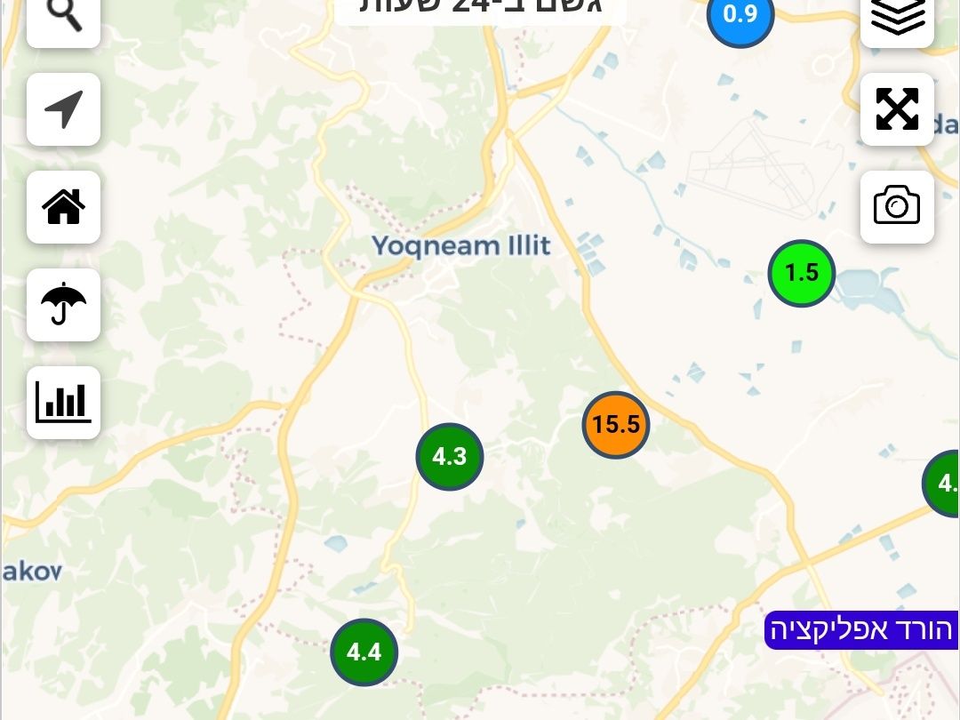 אליקים - 18.5 מ''מ, יקנעם עילית - 9 ממ