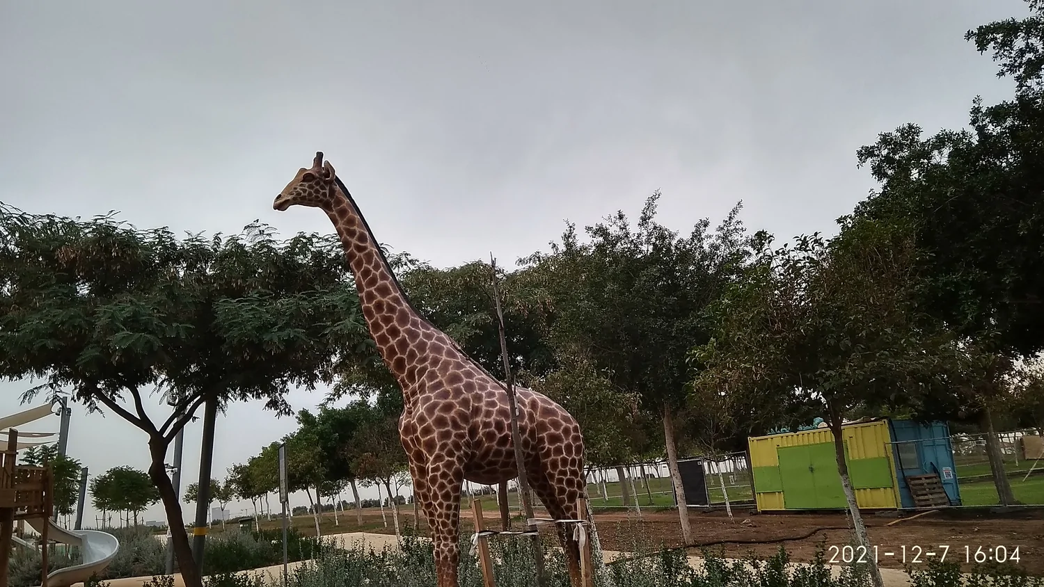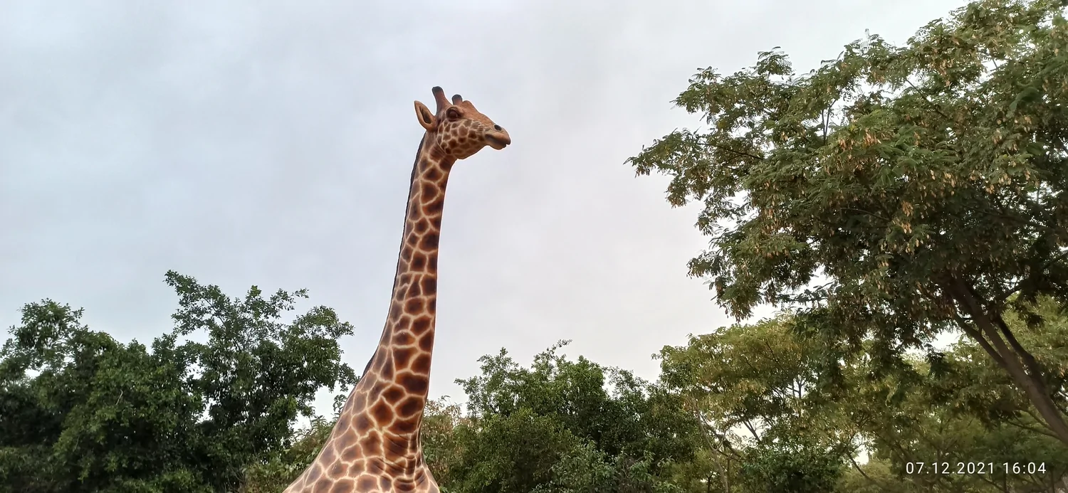 כמובן ג'ירפה מפיברגלס משובח המשמשת כחלק מתפאורת הפארק היפייפה.