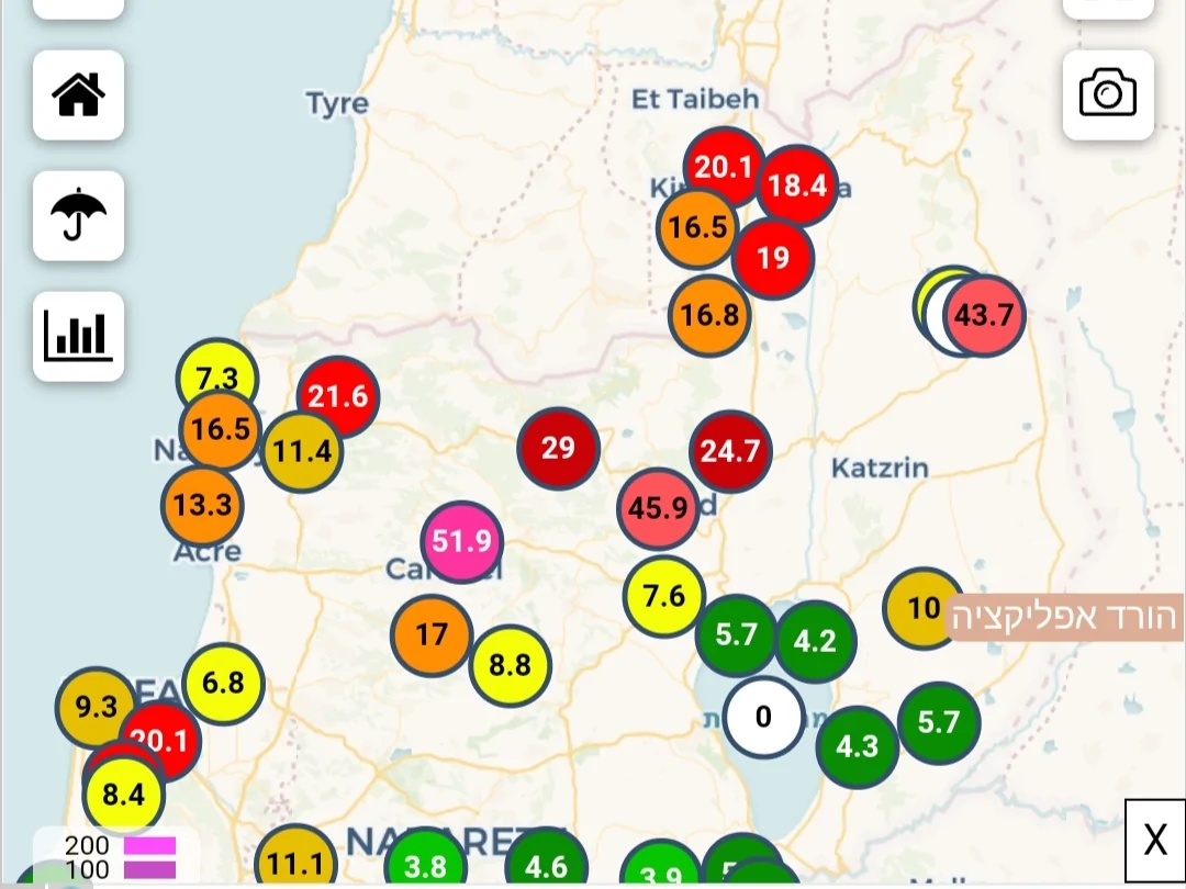 - המכם לא מראה את עוצמת הגשם בצפון, בצפת עוצמות נדירות של גשם יואב