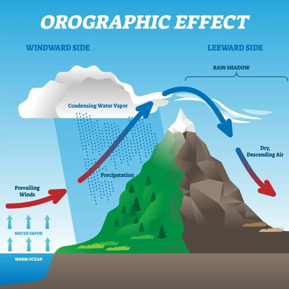 - כן, יורד יותר גשם בפסגות בגלל אורוגרפיה ניב