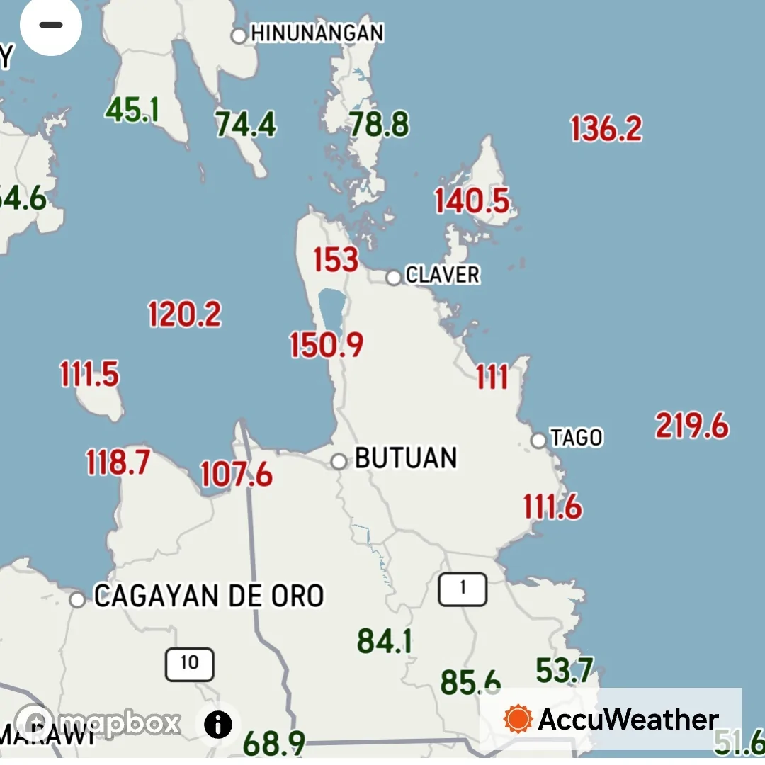 גרף מהירות הרוח ב-Surigao במהלך תנועת טייפון Rai