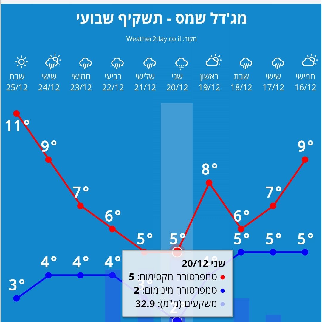 - התחזית למג'דל שאמס לשבוע הקרוב חנוך א