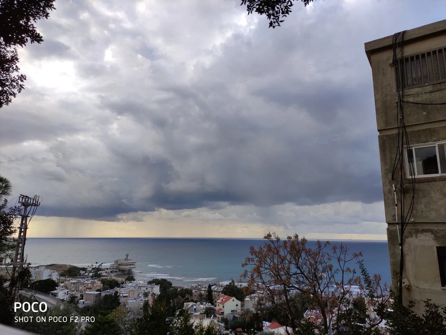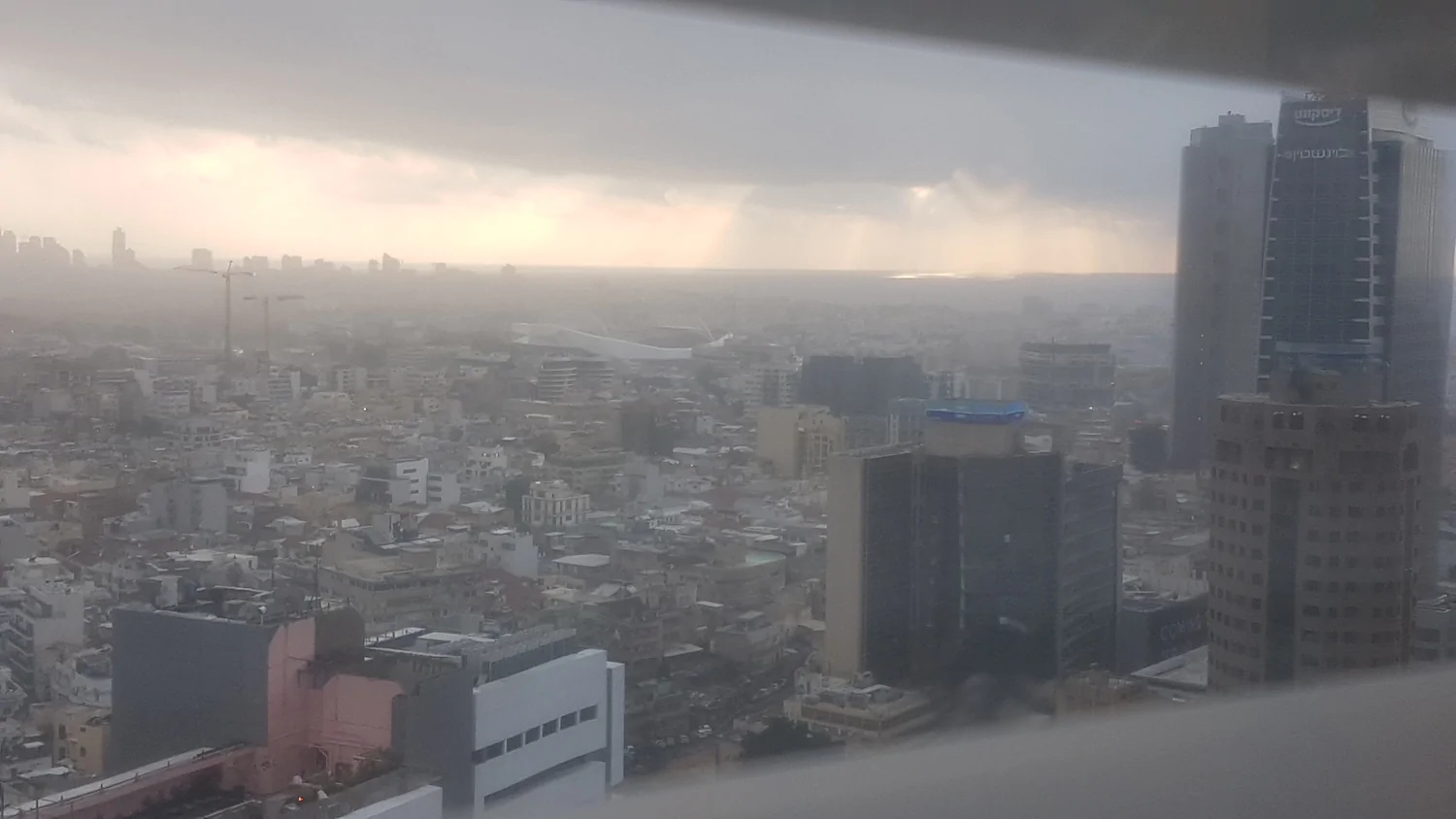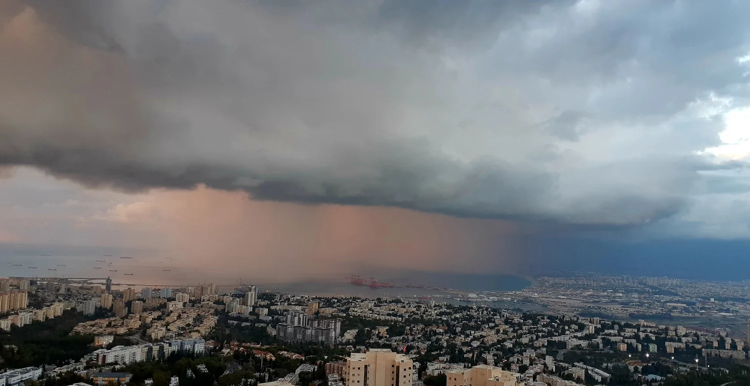 - לקראת שקיעה - גשם ניתך על מפרץ חיפה מונט