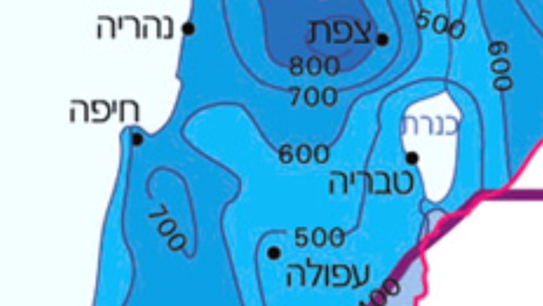 - מפה המראה את אפקט צל הגשם שיוצר הכרמל חנוך א