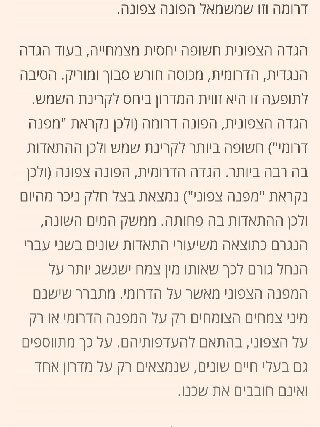 מפנה צפוני ודרומי זו תופעה מוכרת בכל הארץ גם בנגב....אבל אפילו בניואנסים עדינים יותר....גידולים