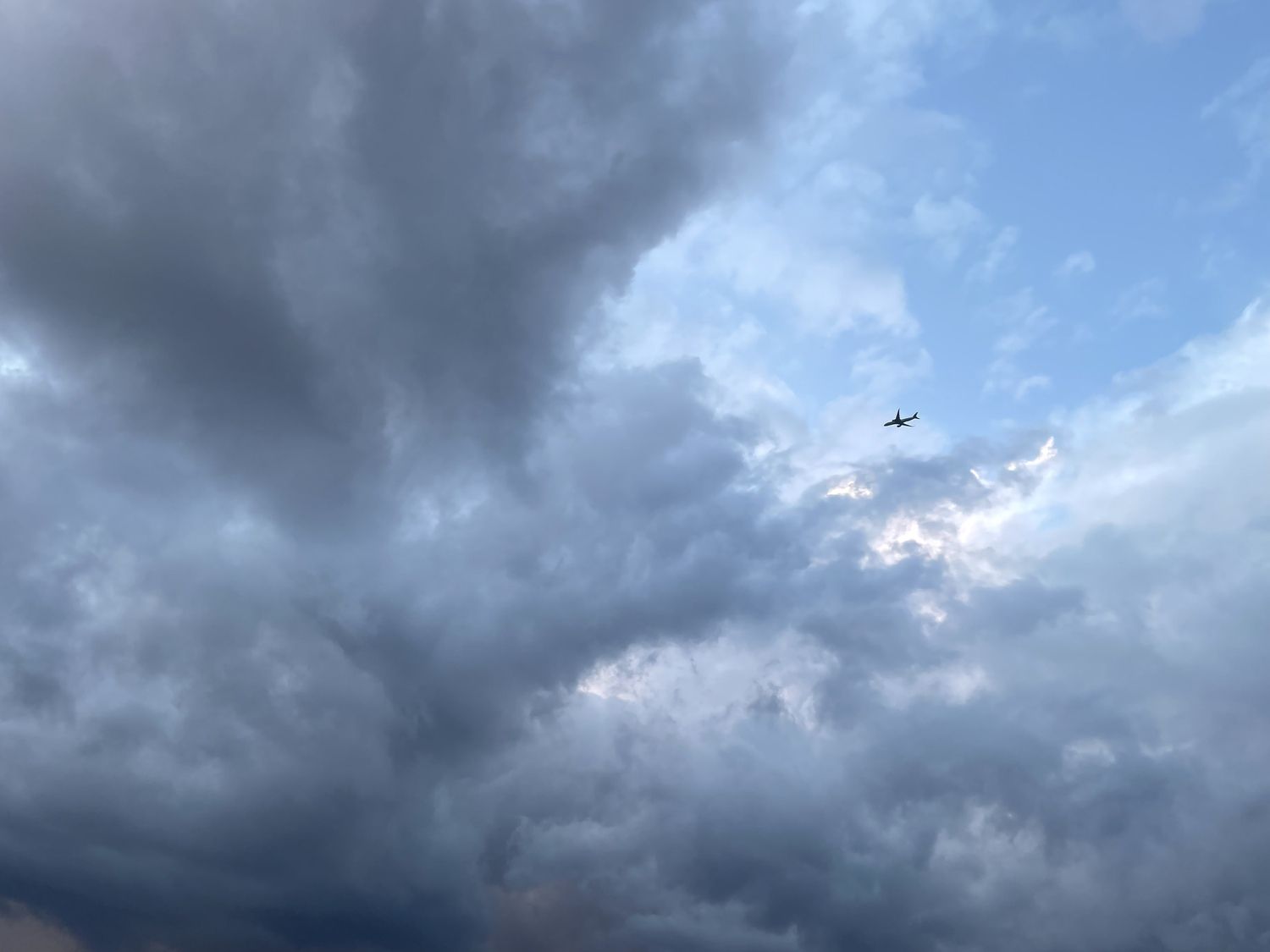 - מערב לים - עננות נמוכה ומטוס מרקיע אל על. אורן