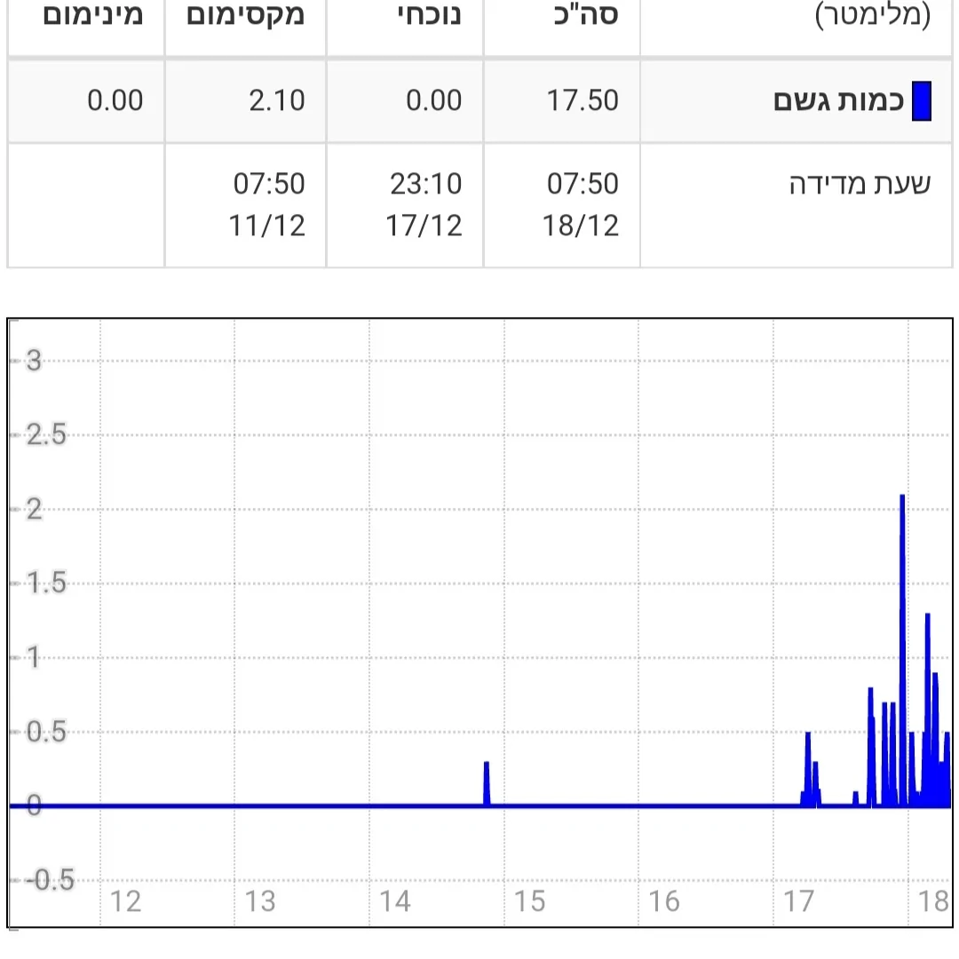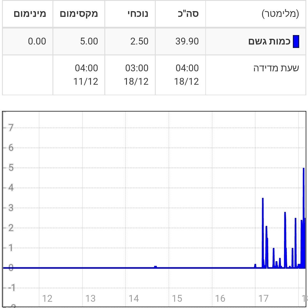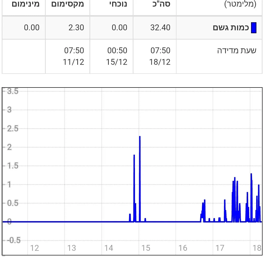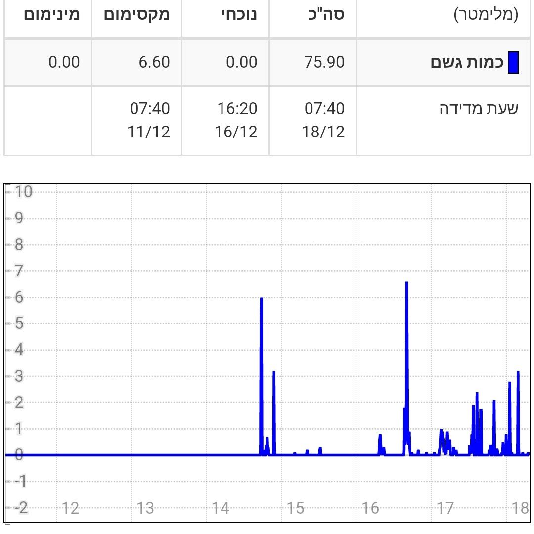 - בתלמי יפה (מזרחית לאשקלון) 35 ממ ביממה האחרונה. 43 ממ למערכת Roy l