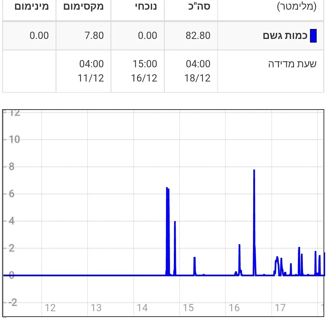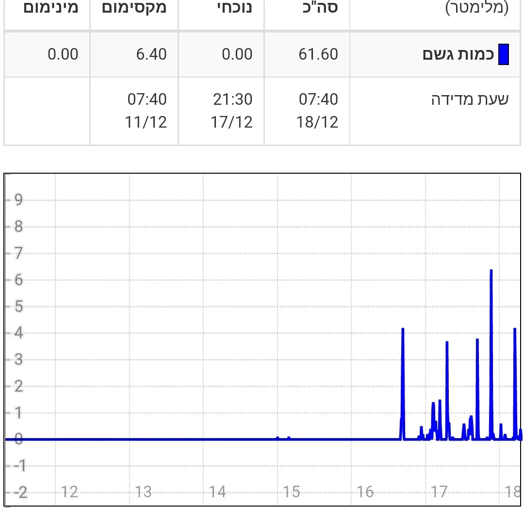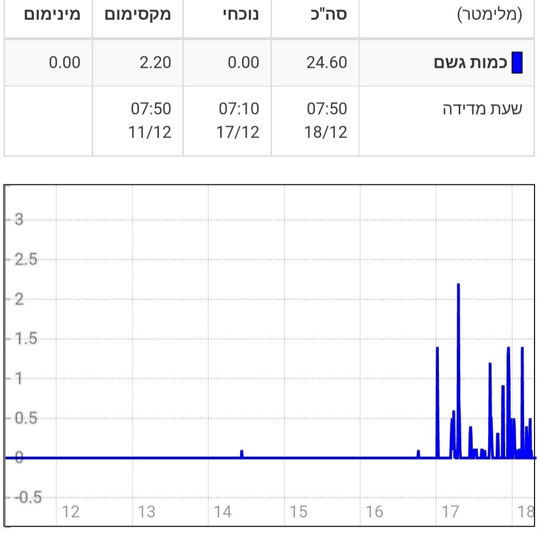 - בתלמי יפה (מזרחית לאשקלון) 35 ממ ביממה האחרונה. 43 ממ למערכת Roy l