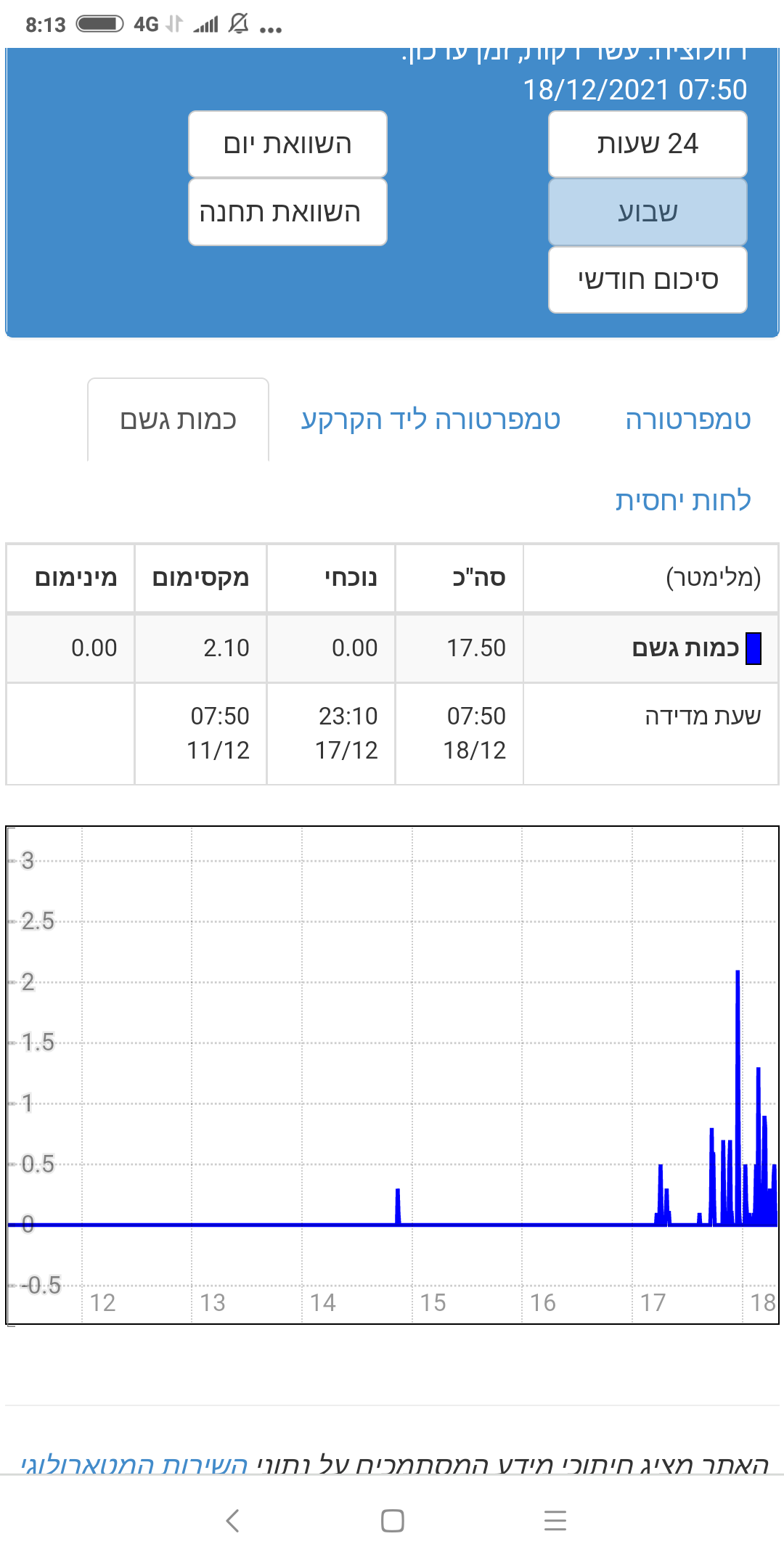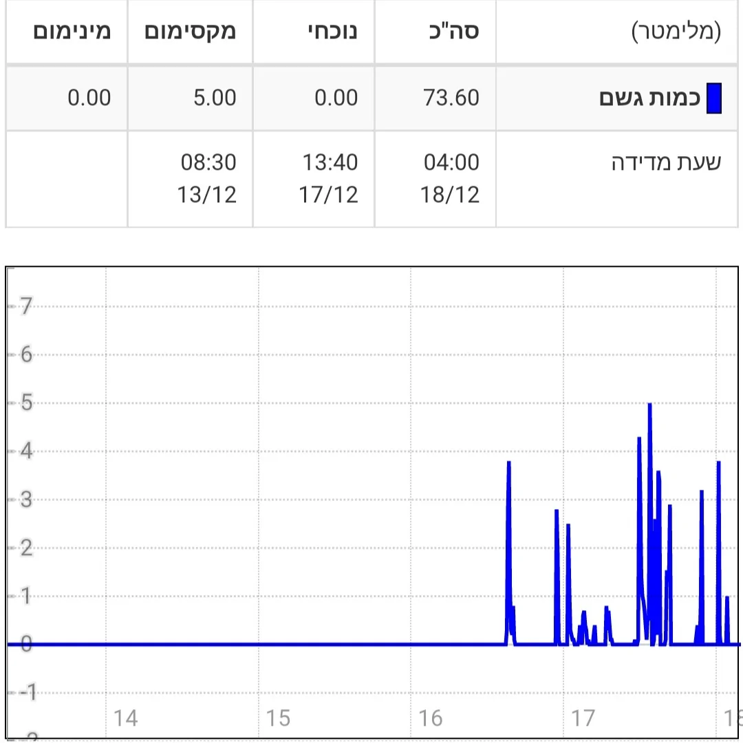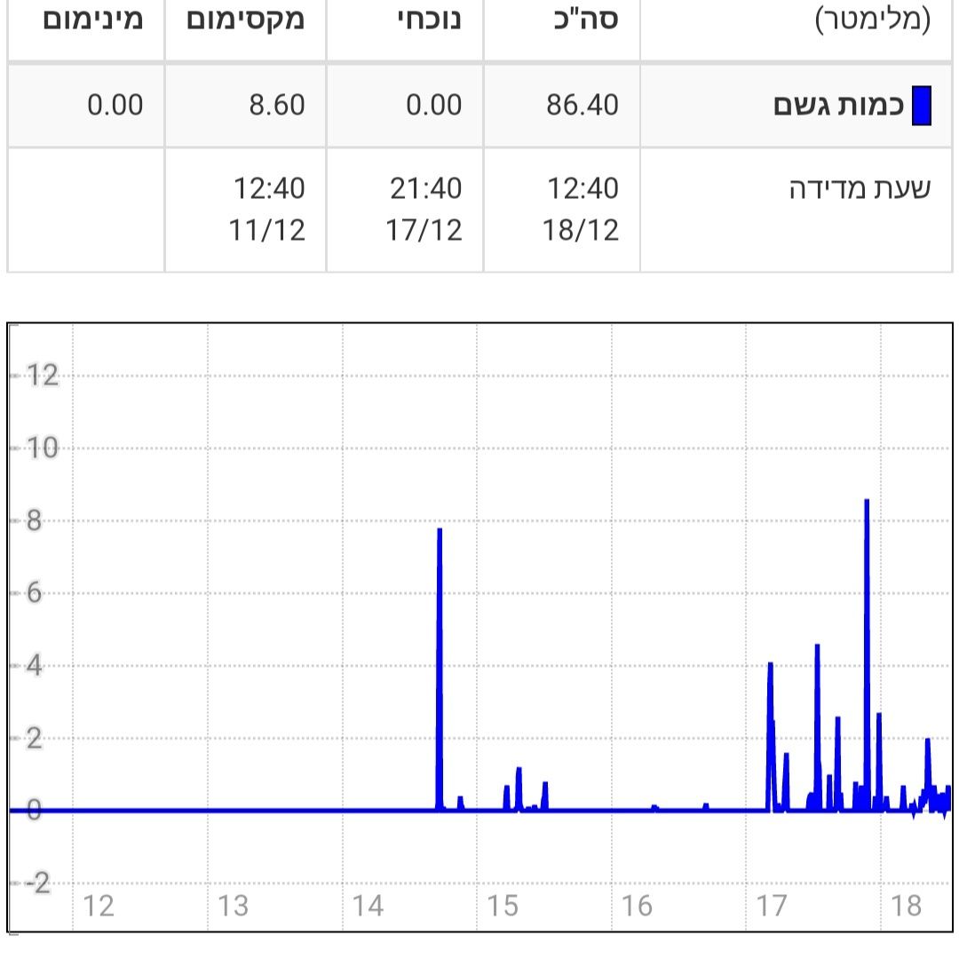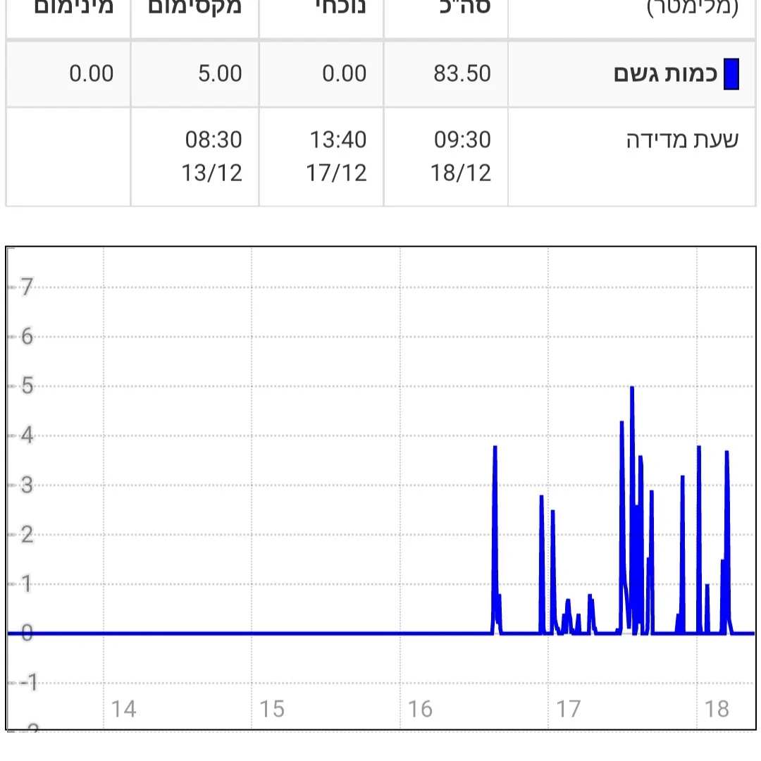 - בתלמי יפה (מזרחית לאשקלון) 35 ממ ביממה האחרונה. 43 ממ למערכת Roy l